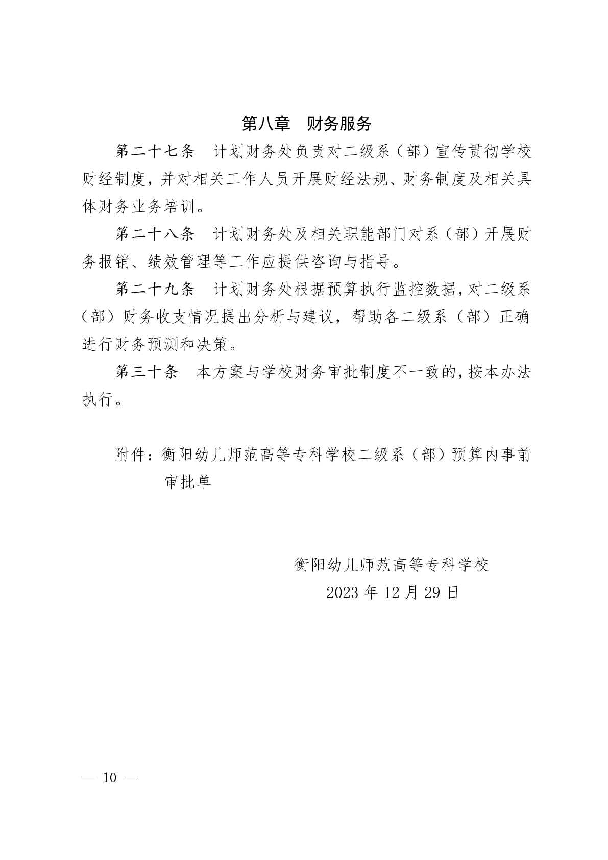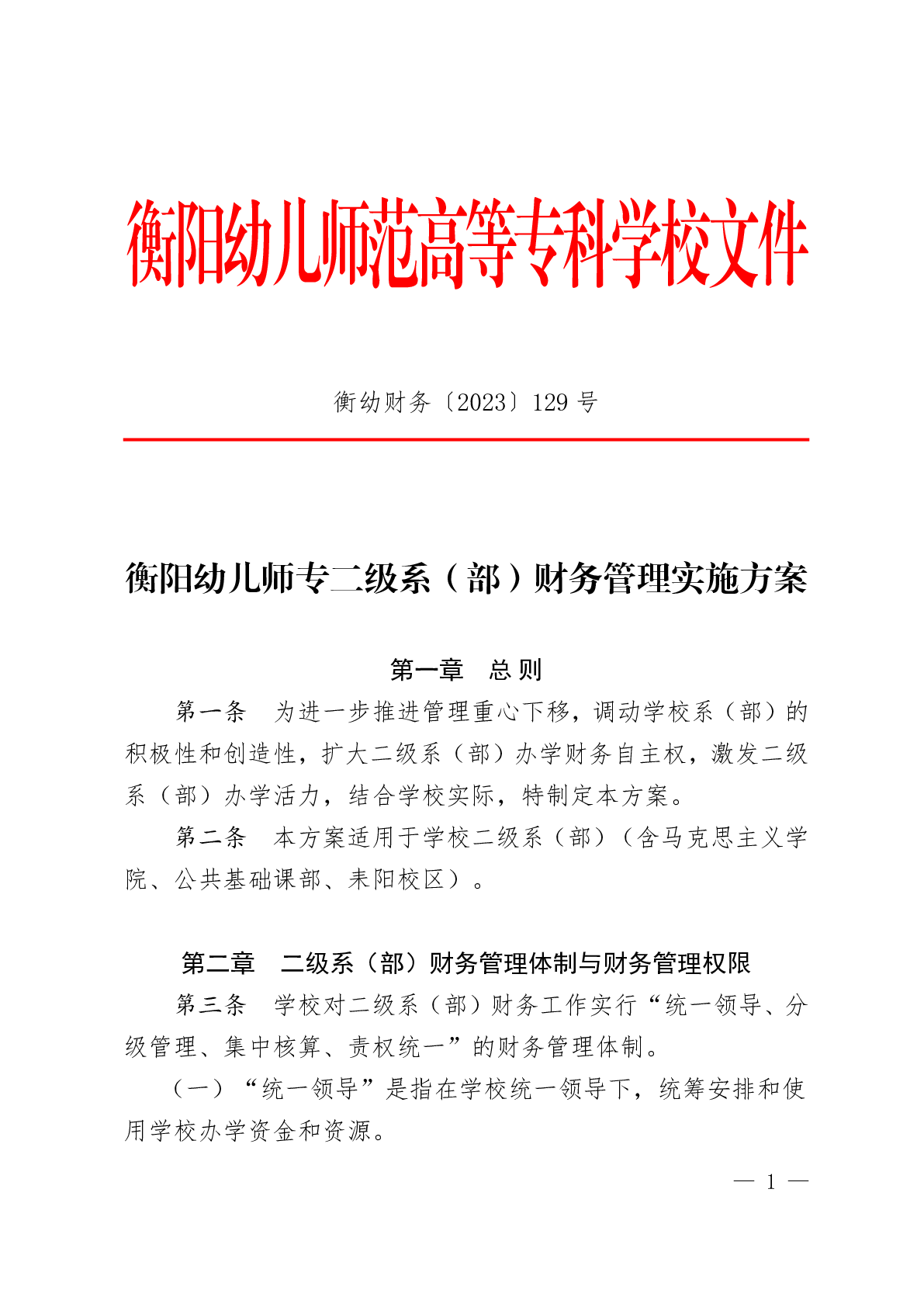 衡幼财务〔2023〕129号 ?衡阳幼儿师范高等专科学校二级系(部)财务管理实施方案.pdf