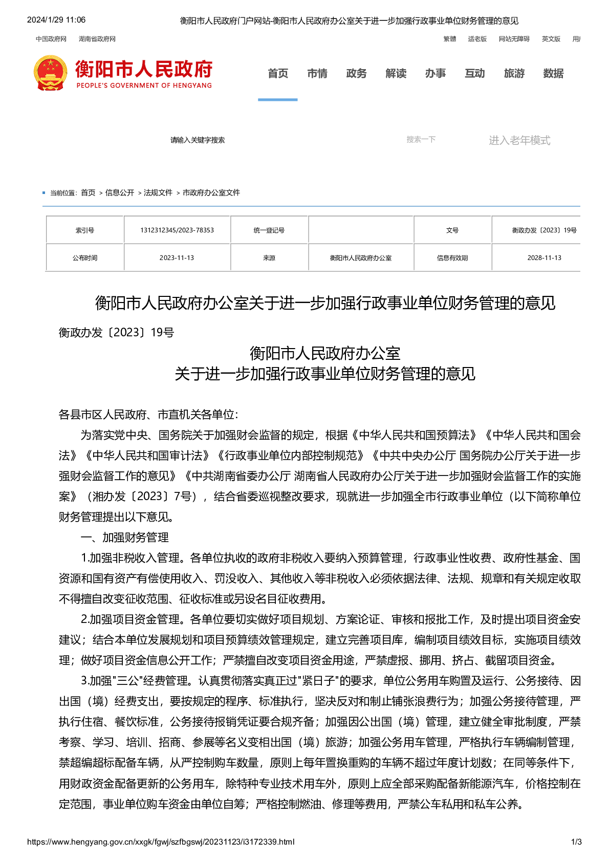 衡阳市人民政府门户网站-衡阳市人民政府办公室关于进一步加强行政事业单位财务管理的意见.pdf