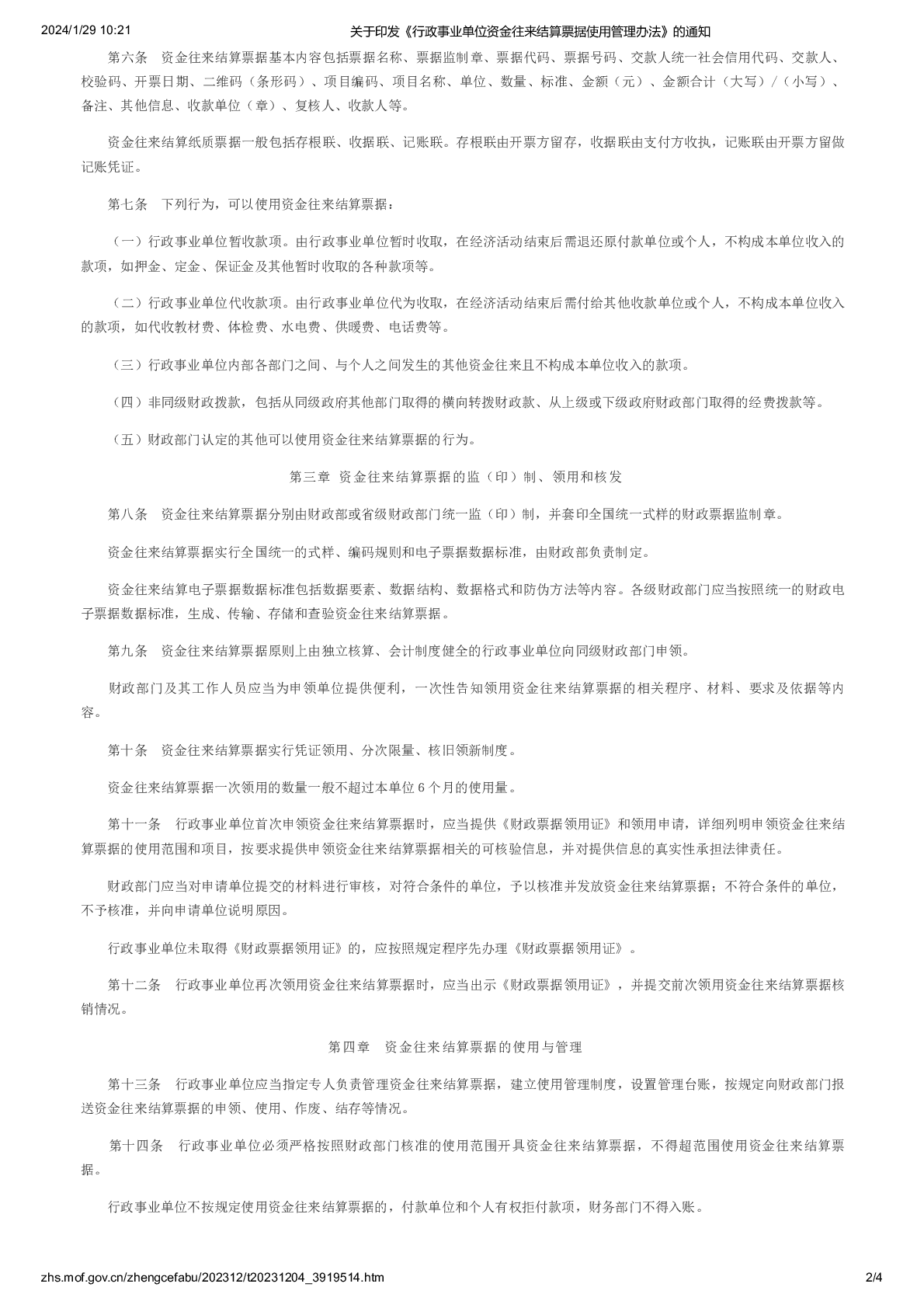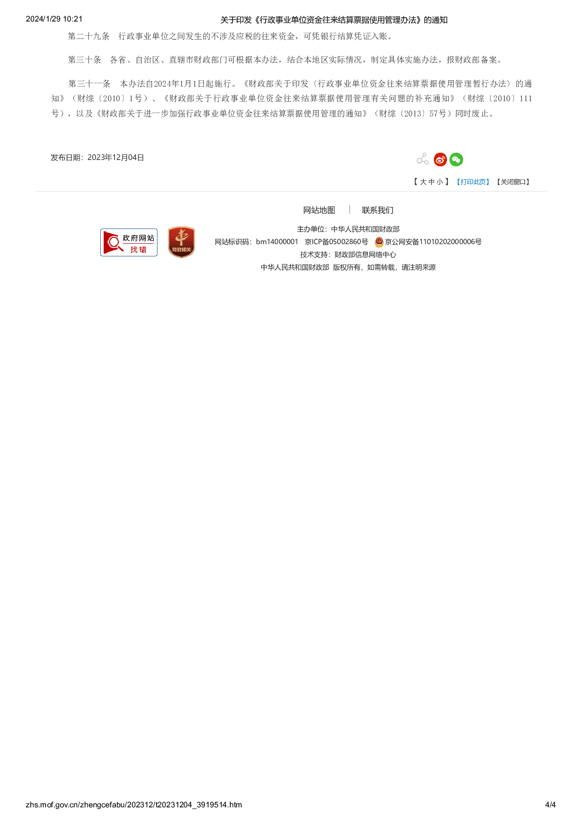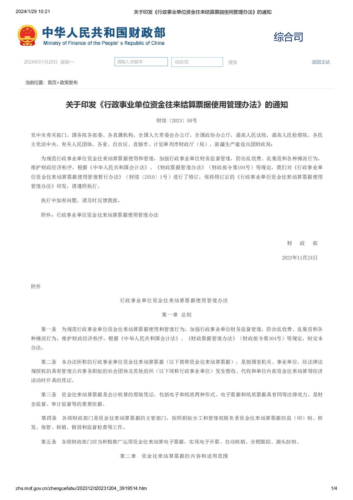 关于印发《行政事业单位资金往来结算票据使用管理办法》的通知 财综〔2023〕50号