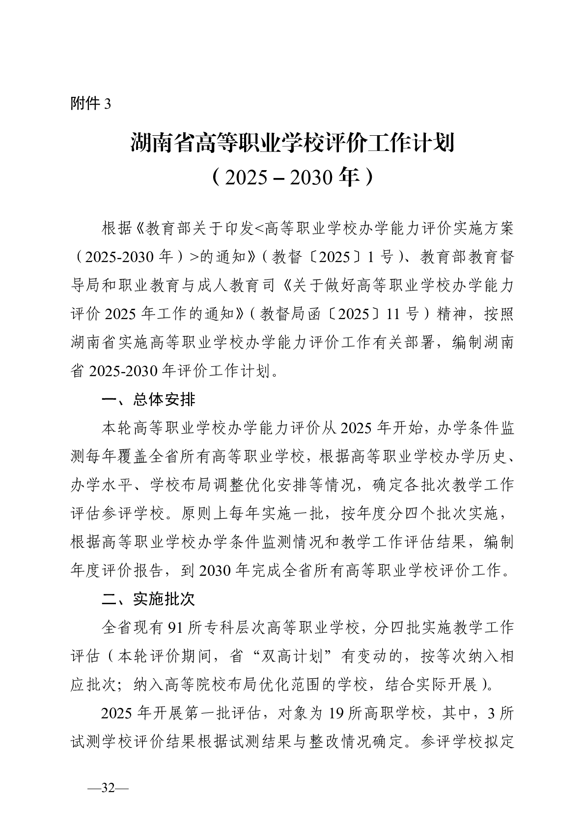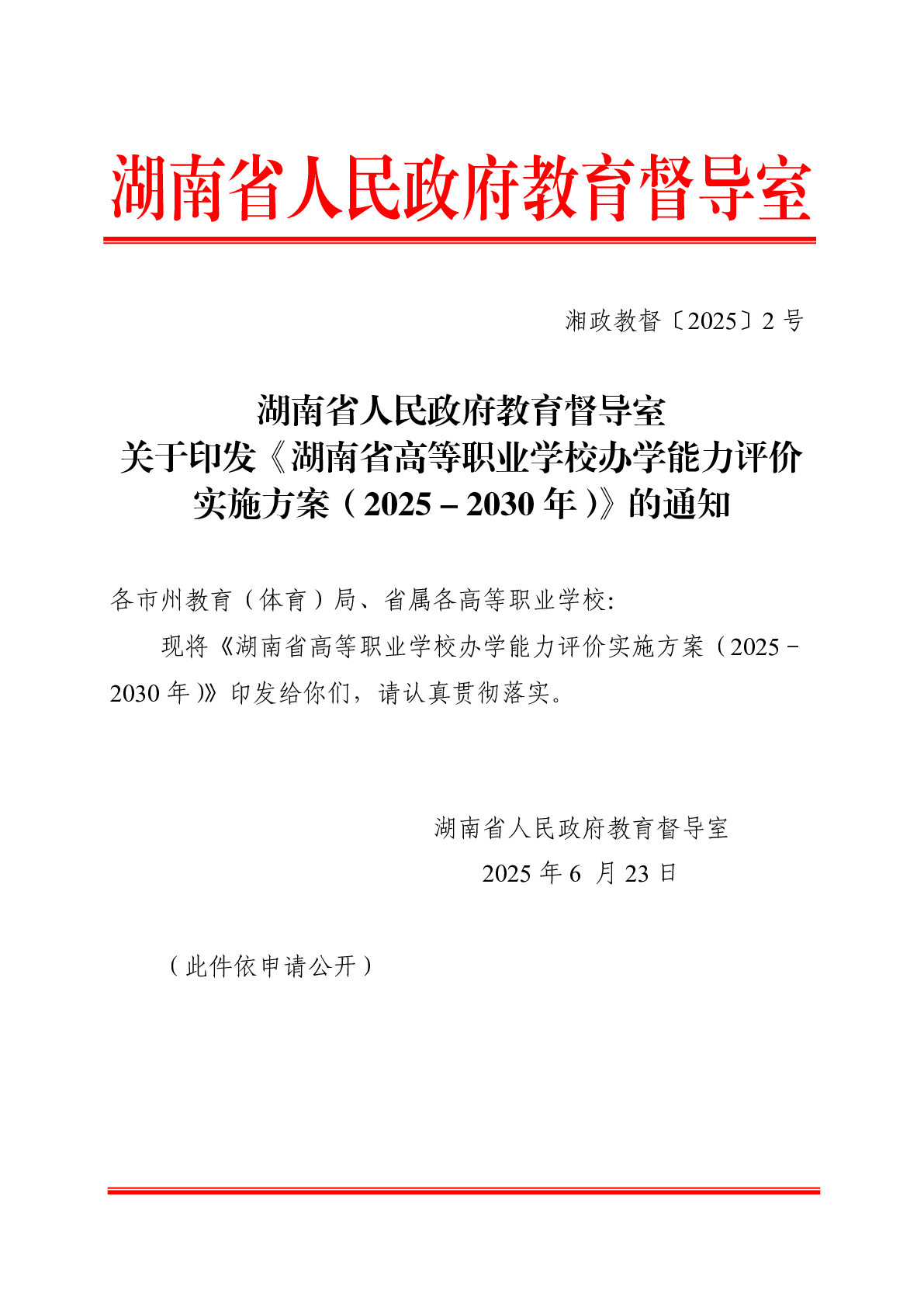 湖南省人民政府教育督导室关于印发《湖南省高等职业学校办学能力评价实施方案(2025-2030年)》的通知