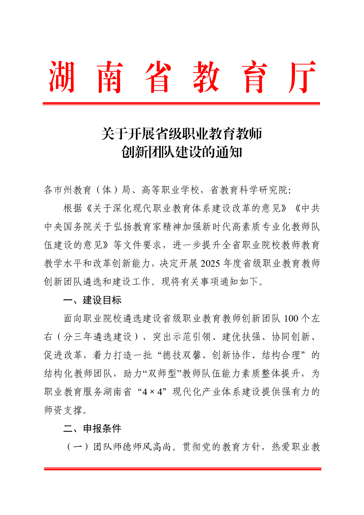 关于开展省级职业教育教师创新团队建设的通知