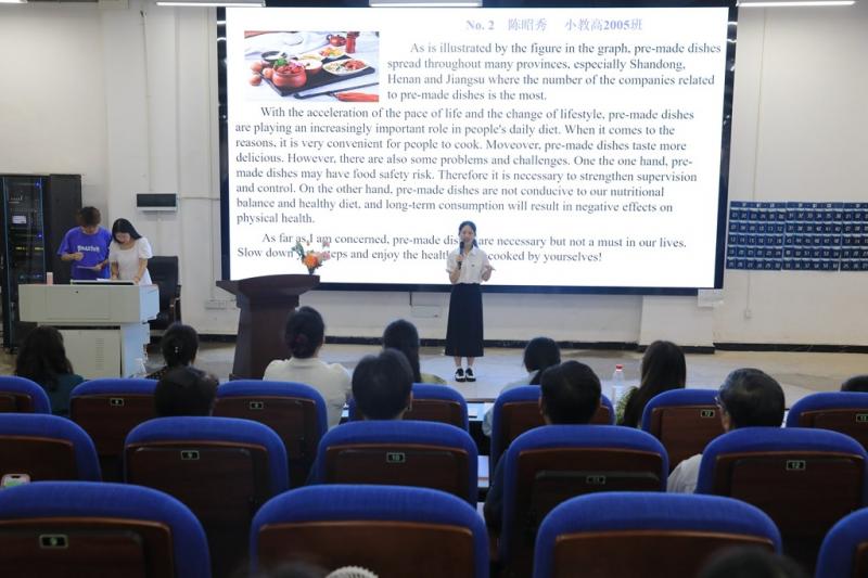 本次比赛由公共基础课部和大学英语教研室承办,分初赛、复赛和决赛三个环节。经过初赛和复赛激烈比拼,23名选手脱颖而出,成功晋级决赛。决赛严格按照湖南省高职院校技能大赛高职英语口语赛项要求进行。选手根据“预制菜企业分布Top10省份”的图表信息有效组织语言,以英语演讲形式各抒己见。评委老师根据选手的陈述内容进行一对一的现场问答,充分考验选手们的临场应变能力和英语综合能力。评委们最终从选手的演讲内容、即兴答辩、语音语调、仪态形象等方面进行现场综合评分。经过两小时的激烈角逐,学前2208班陈艺、学前2210班成盼获得决赛一等奖,小教高2005班陈昭秀等五名学生获二等奖,托育2301班马婧仪等七名同学获三等奖。