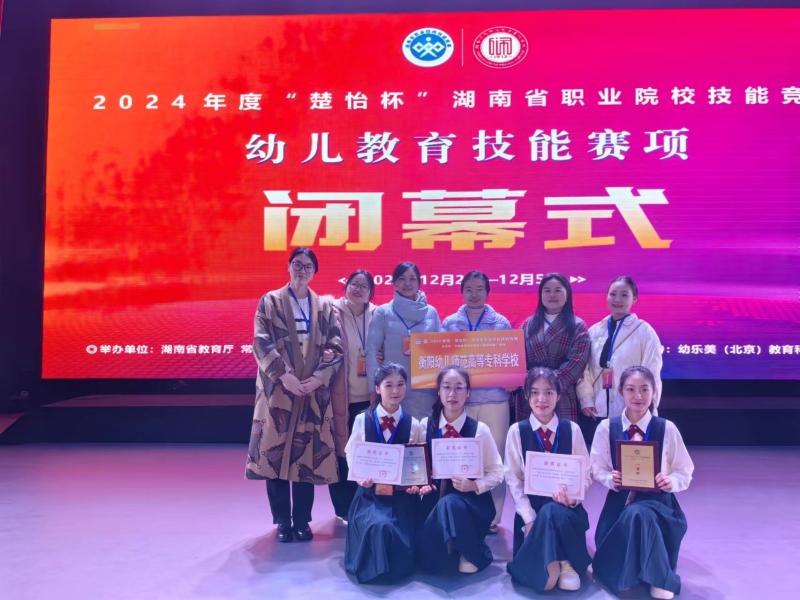 ? ? ? 12月4日,为期四天的2024年度“楚怡杯”湖南省职业院校技能大赛学前教育专业教育技能赛项落下帷幕,我校派出的两支参赛队在与来自全省22所高职院校的42支参赛队伍同台竞技中斩获一、二等奖各一个,实现了本赛项的历史性突破!