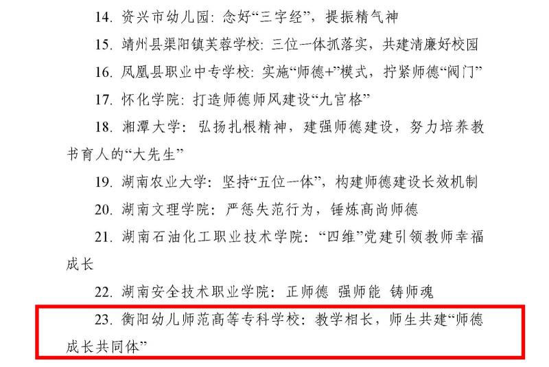 衡阳幼儿师专案例入选湖南省师德师风建设典型案例