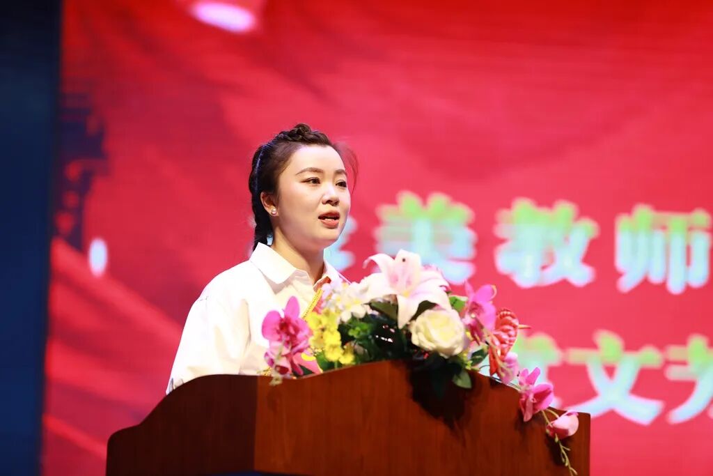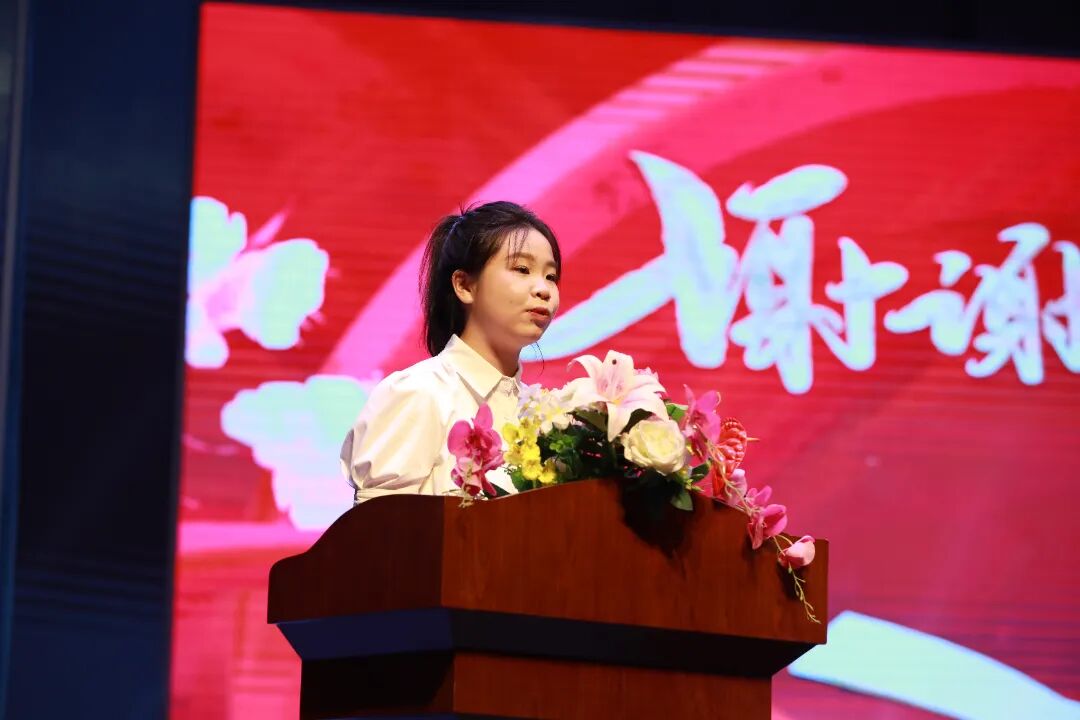 最美教师、最美教育工作者、最美辅导员代表分别进行了交流发言,分享了他们在教育教学、立德树人、师德师风等方面的教育故事和宝贵经验。学生代表欧阳雨悦做感恩发言。