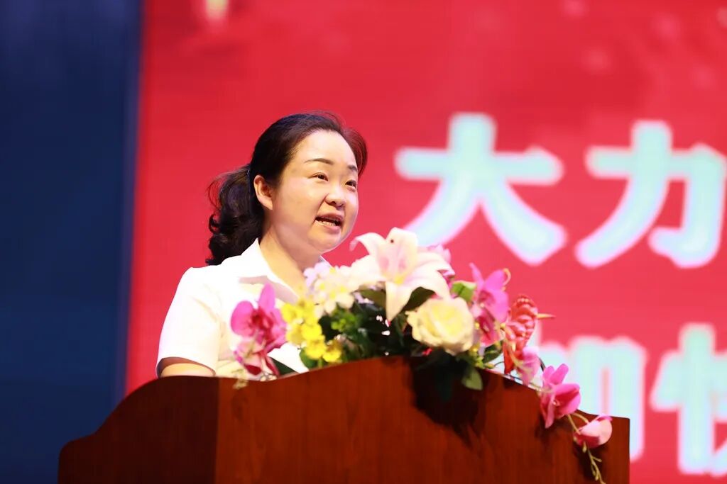 学前教育系教师刘梅华在大会上向全体教职员工发出倡议,号召大家要涵养高尚师德师风,弘扬教育家精神;要深化改革创新,激发教育活力;要落实“十个转变”,争做幼师主人。