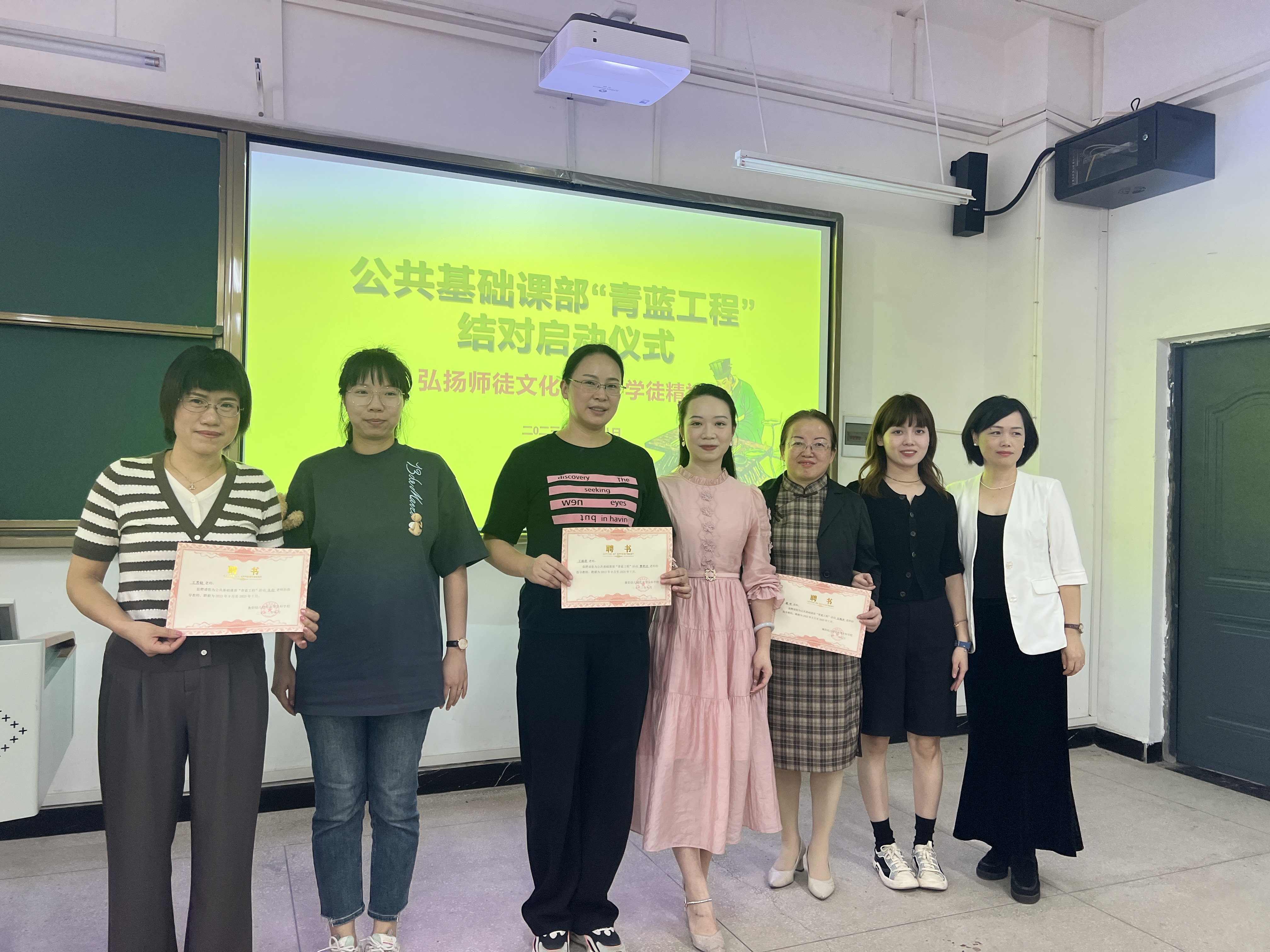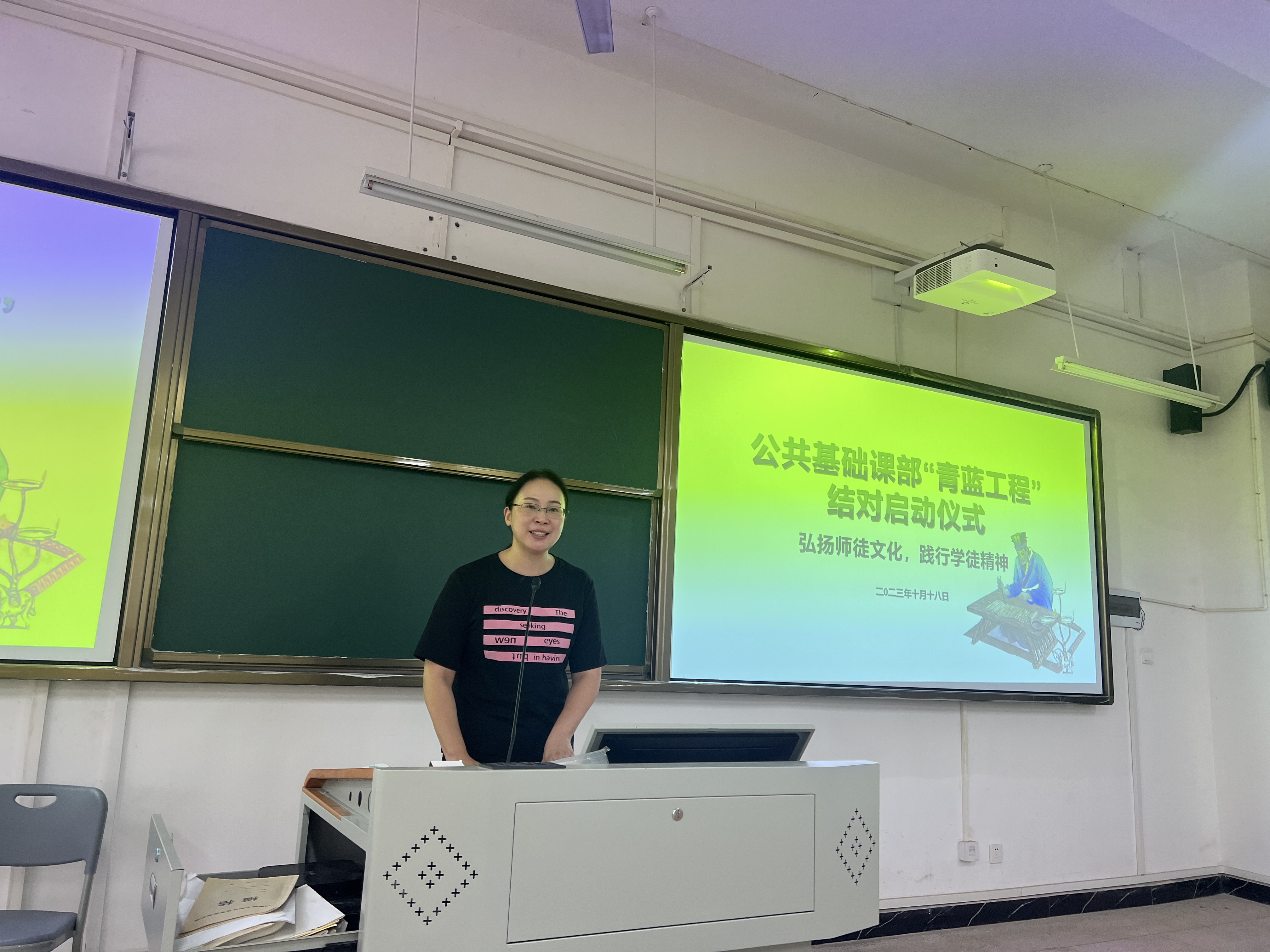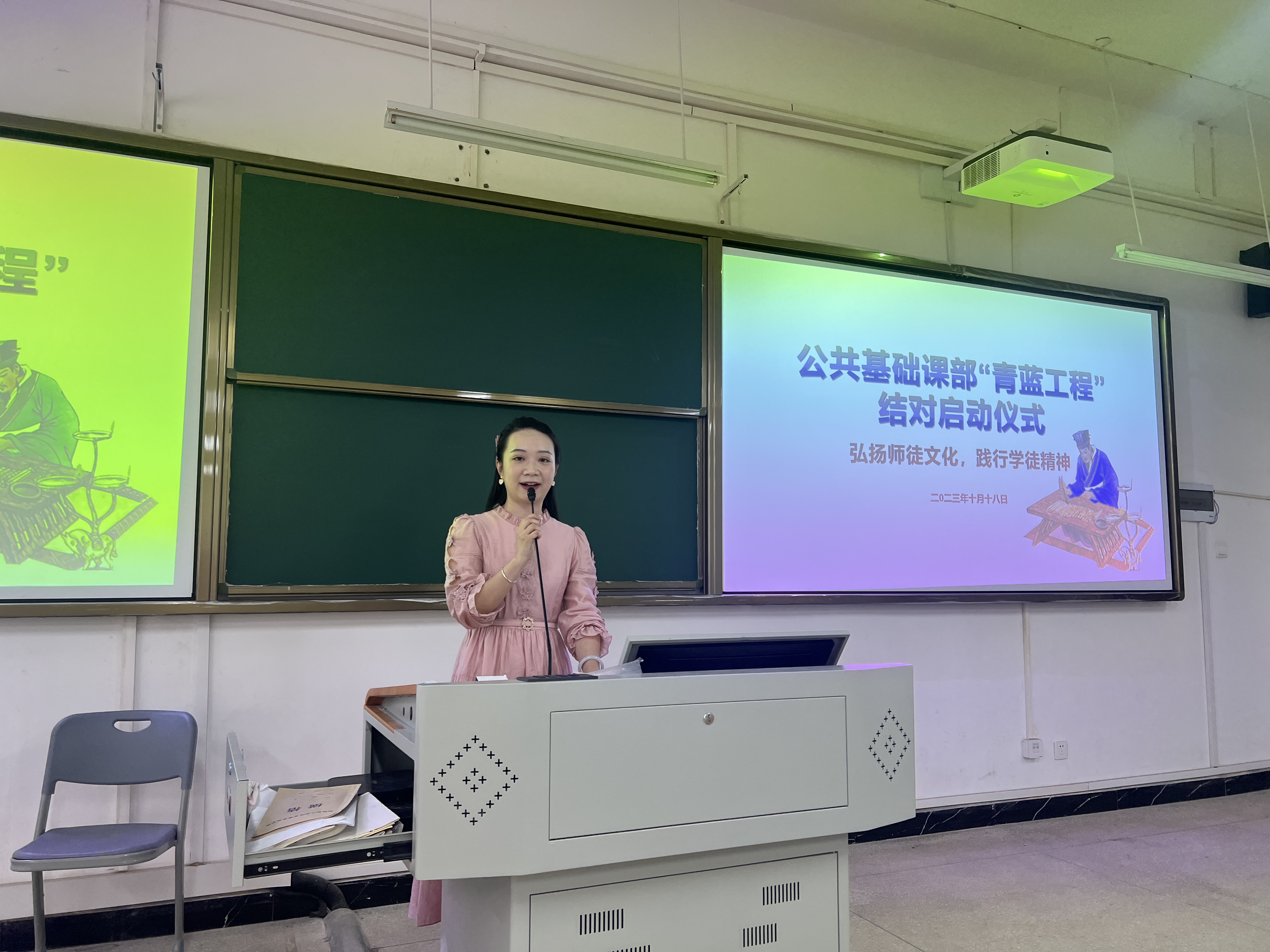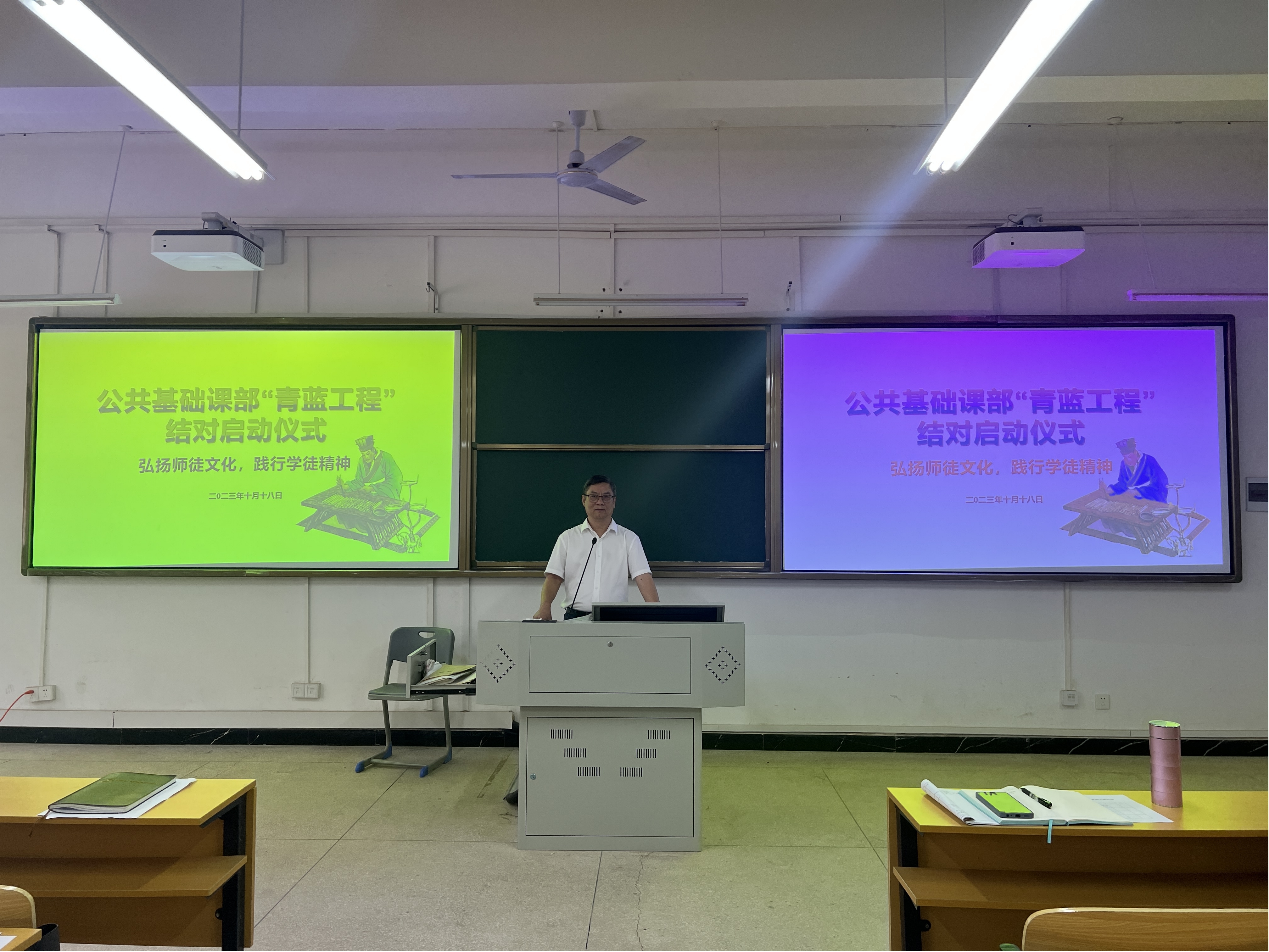 最后,公共基础课部主任李鹂桦作总结讲话。他表示,青蓝工程是学校师资队伍建设的一个重要组成部分,是教育工作的一种纽带,一种传承,也是一种双向促进。一个优秀教师的成长离不开自身不懈的努力,但师父的指导、前辈的传、帮、带同样起着至关重要的作用。对结对师徒教师提出了三点希望:一是希望师徒之间在教学教研上多交流,多沟通,做到教学相长。师徒之间的教学思想既要有共鸣声,也要有砥砺声,更应有碰撞声,这样才能行稳致远,气象万千。二是希望师徒之间在工作生活中,相互关心,相互帮助。徒弟要虚心好学,多听课,多问询,多思谋;师傅要悉心传授,不保留,不掩饰,不护短。希望师徒在共进中一同成长,共享阳光霓虹,共担风雨冷暖。三是希望年轻老师们在成长的路上,固然需要人帮扶、引导,但最终自已的路还得自己去走,去探索,去发现,要凭借年轻人的活力和创新精神,踏实工作,锐意进取,成为学校离不开的老师、学生最喜爱的老师、社会上口口相传的老师。