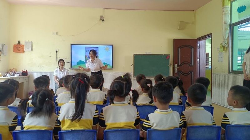 5月13日,大学语文教研室师生走进衡南县洪山镇阳光幼儿园,组织"思政润心田 助力共成长"主题送教活动。公共基础课部领导李鹂桦、周波深入活动现场调研指导。