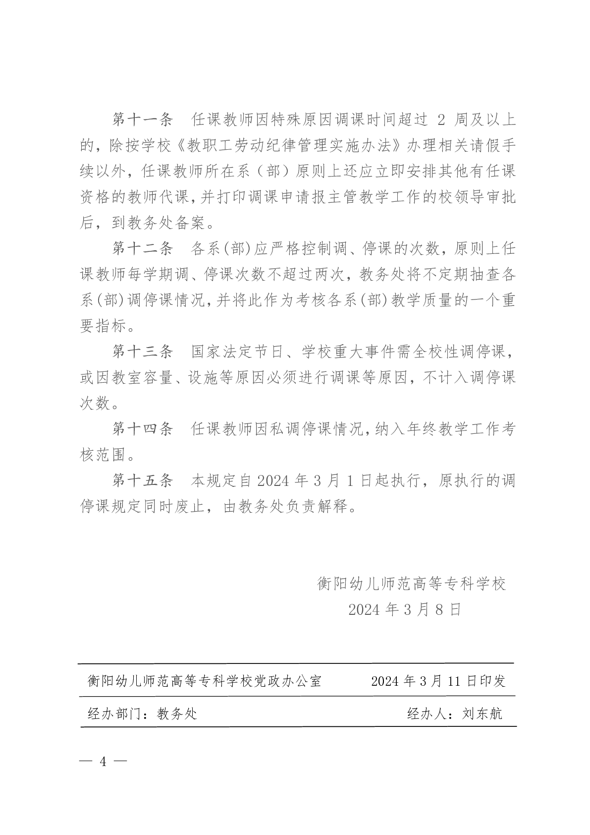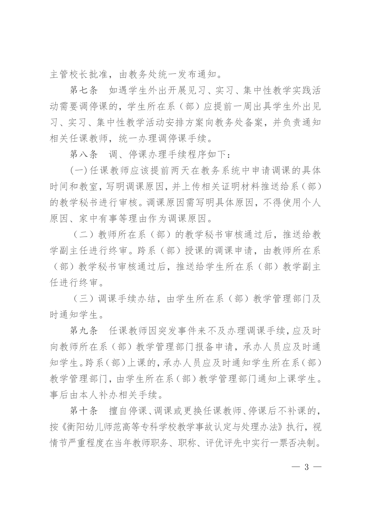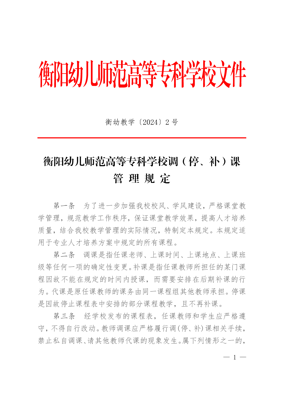 衡幼教学〔2024〕2号 衡阳幼儿师范高等专科学校调(停、补)课管理规定