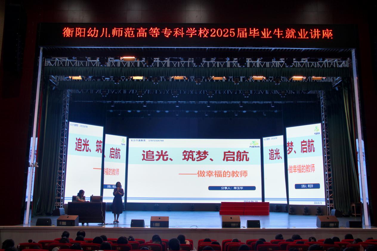 ? ?为深入贯彻落实党中央、国务院关于高校毕业生就业创业工作决策部署,进一步加大就业创业政策宣传力度,帮助学生更好地规划未来职业发展道路,6月18日晚上,学校招生就业处联合学前教育系在学校大礼堂举办就业指导讲座,学前教育系教师代表和2022级全体同学参加。招生就业处处长谢小光、学前教育系党总支书记邓艳华、学前教育系主任杨钰锋到会议现场指导工作。
