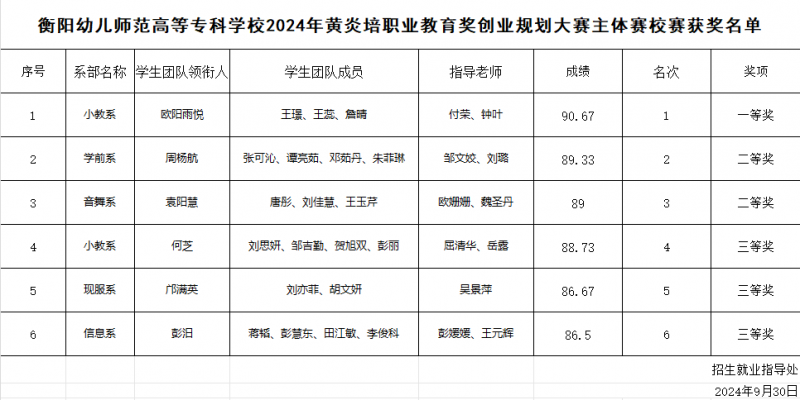 黄炎培大赛主体赛校赛获奖名单:
