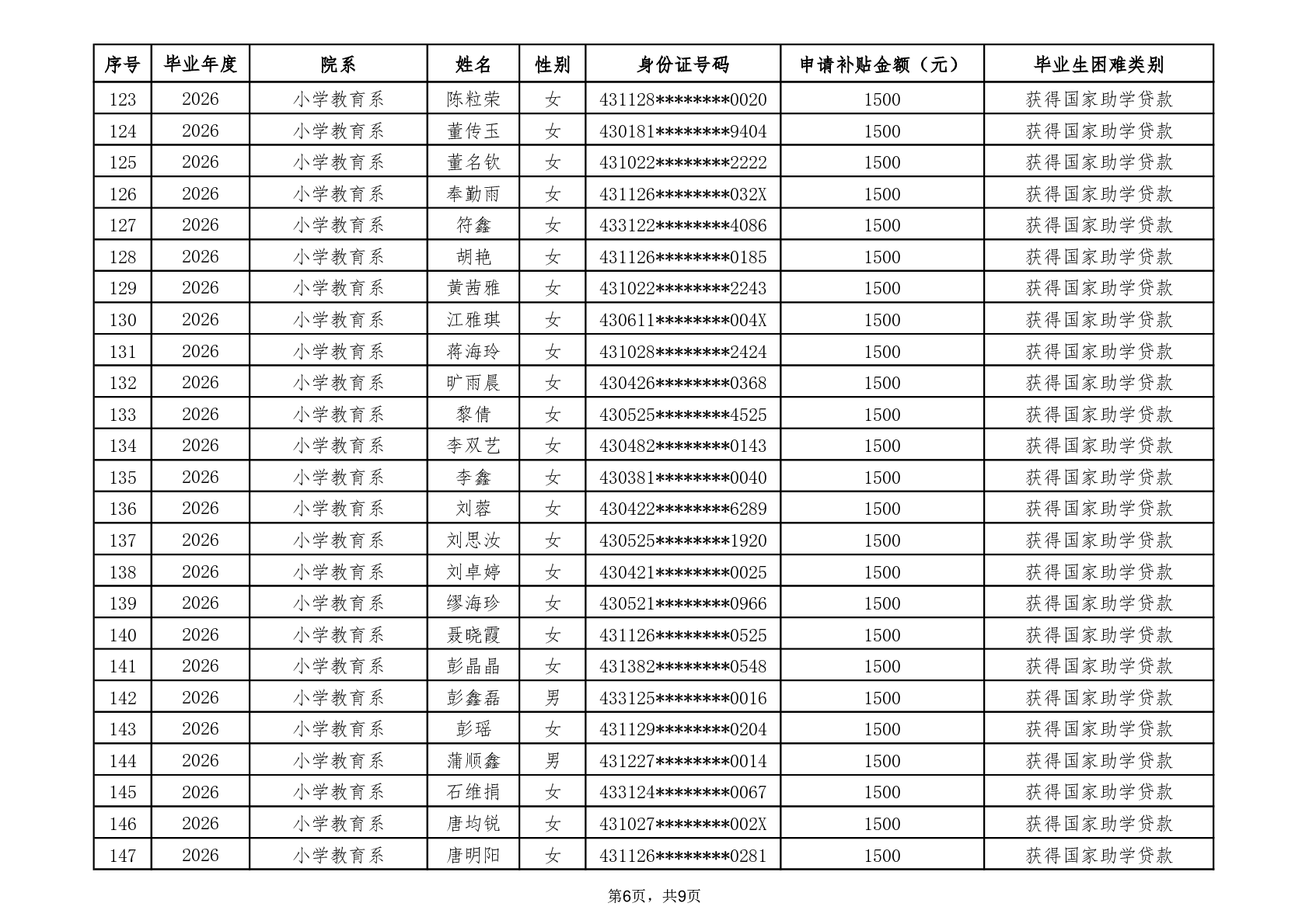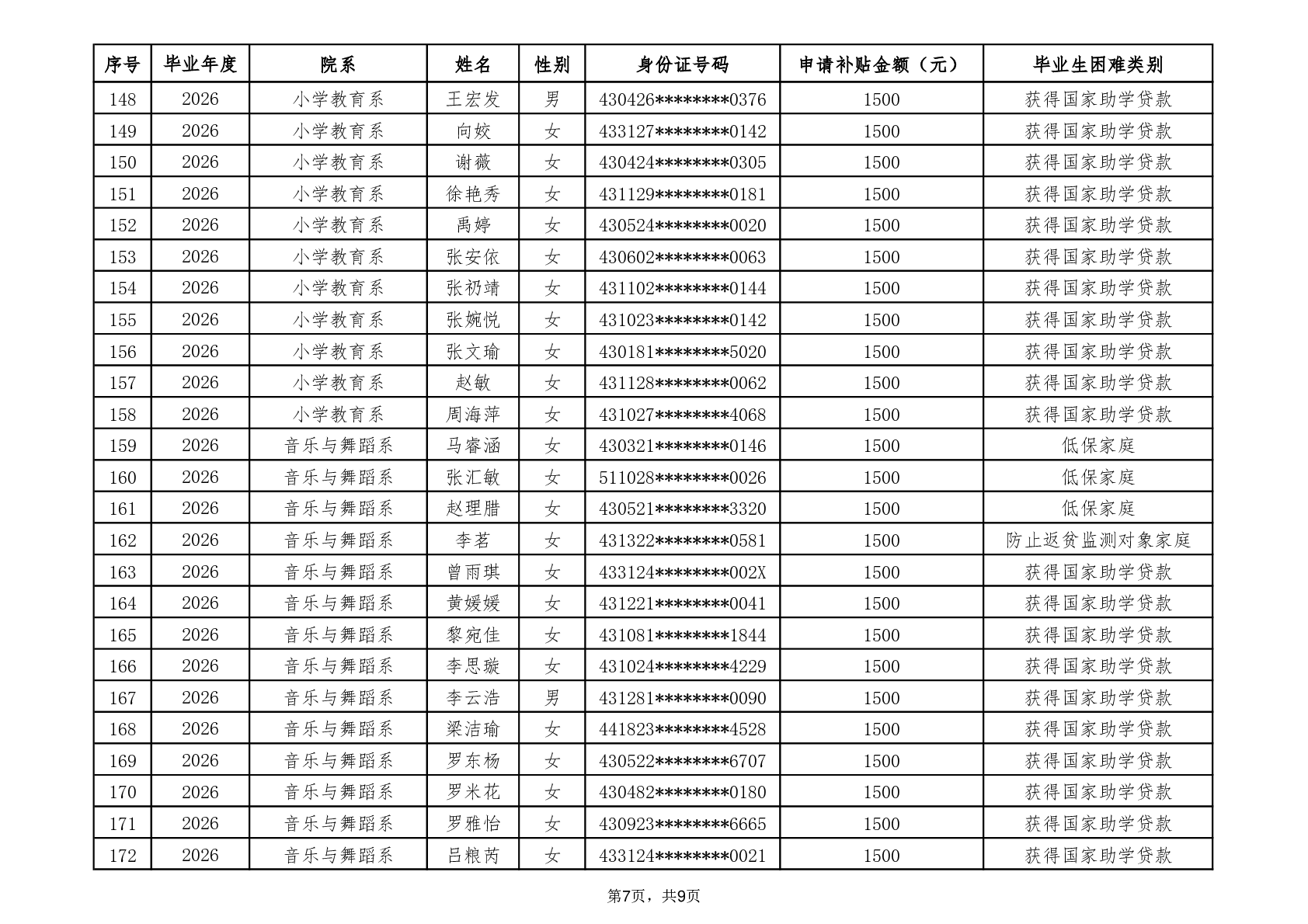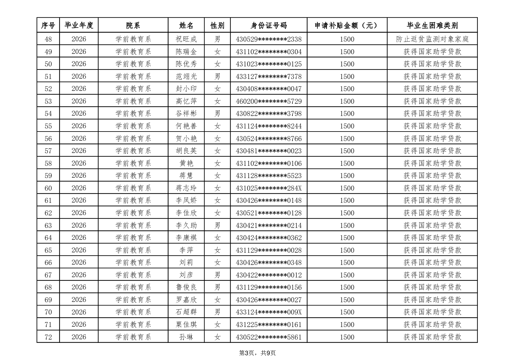 关于衡阳幼儿师范高等专科学校 2026 届毕业生一次性求职创业补贴审核通过名单的公示