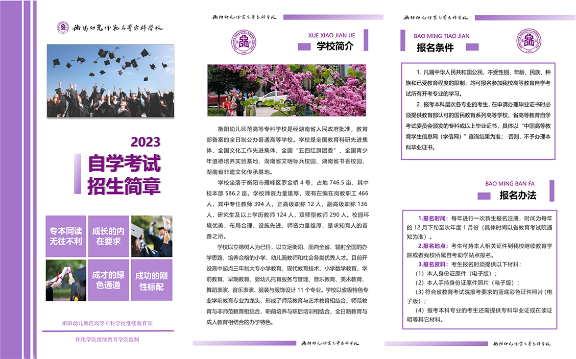 衡阳幼儿师范高等专科学校2023年高等教育自学考试招生简章