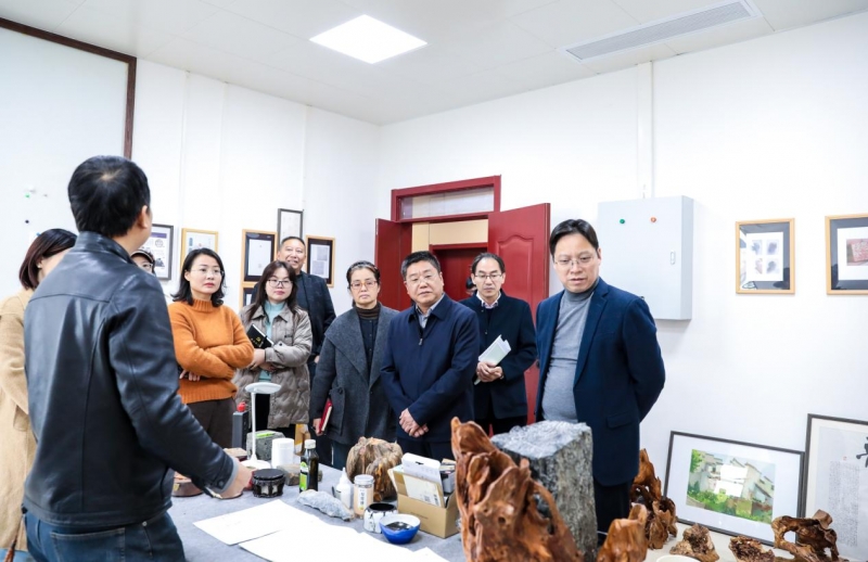 11月19日,学校党委书记李来清、校长邓昌大一行深入我系仇辉名匠工作室与王会娟青年创意设计工作室开展实地调研,对两大工作室的