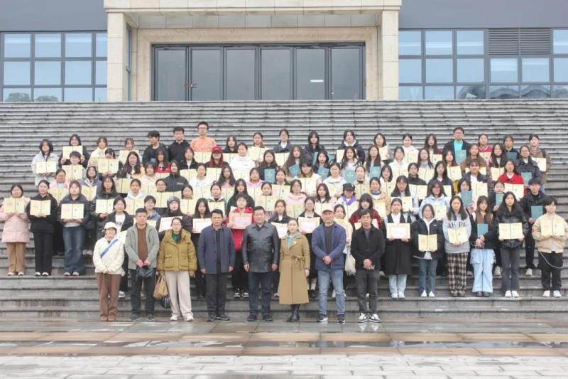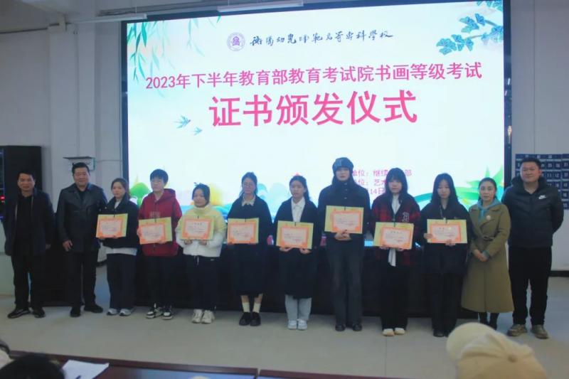 3月14日,衡阳幼儿师范高等专科学校于学前大楼阶梯五教室举行了2023年下半年教育部教育考试院书画等级考试证书颁发仪式,学校继续教育部、艺术系教育管理工作人员、部分书画老师和书画等级考试考生出席了本次颁奖仪式。