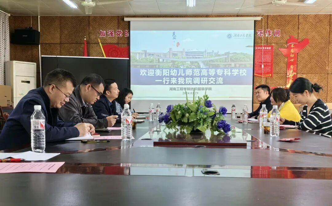 3月29日上午,艺术系党总支副书记许志伟与服装教研室主任杨丽、专业教师罗雅娴一行三人前往湖南工程学院纺织服装学院交流学习,该校纺织服装学院院长周衡书、副院长陈晓玲与何斌、副书记杨文魁、服装设计教研室主任夏添出席了交流会。
