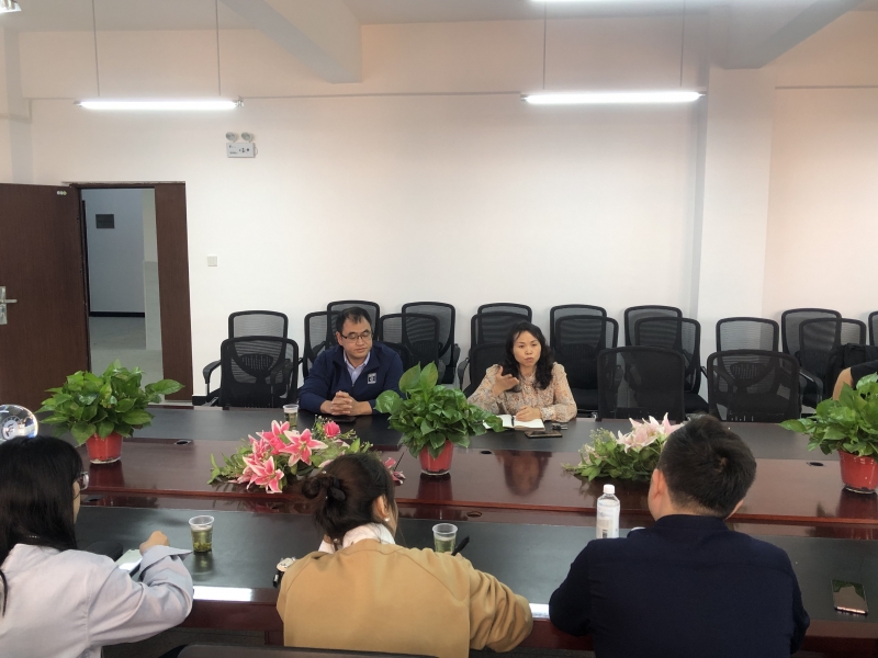 参观结束后,在3楼会议厅进行交流学习,湖南工程学院副院长陈晓玲、副书记何斌与服装专业老师出席了此次交流会。