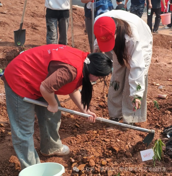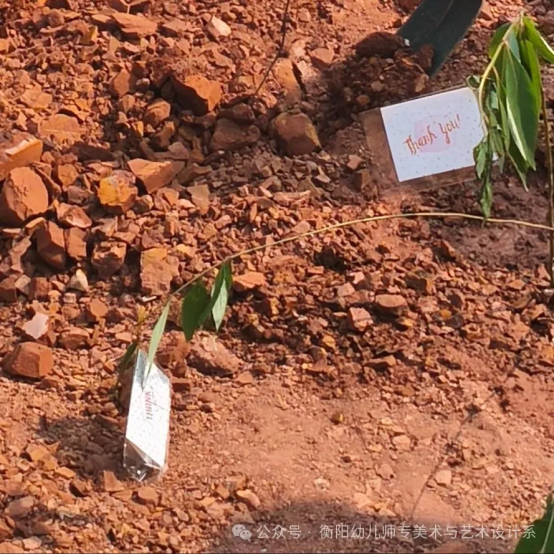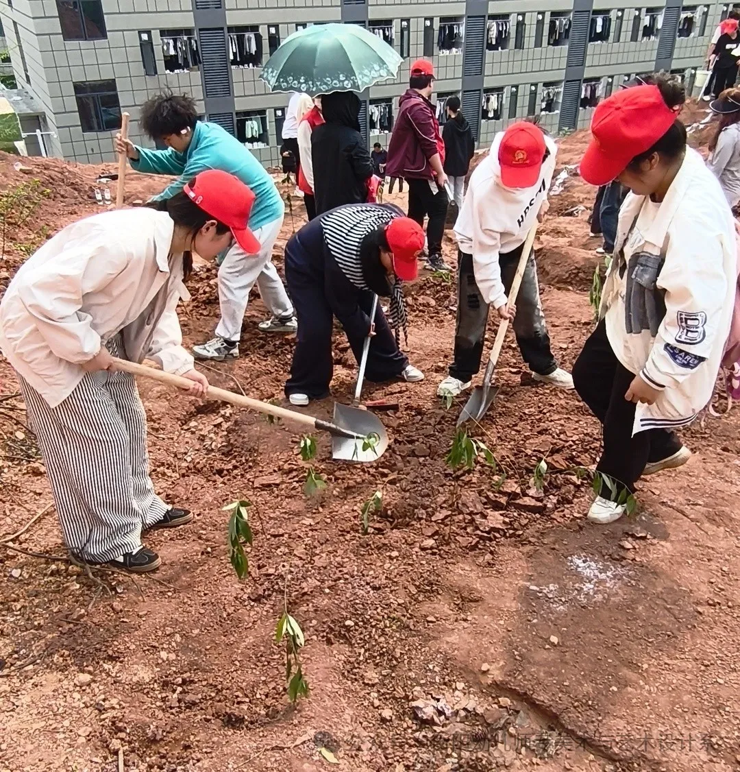 美术与艺术设计系的学生将植树活动与专业特色结合,展现出别具匠心的创意。