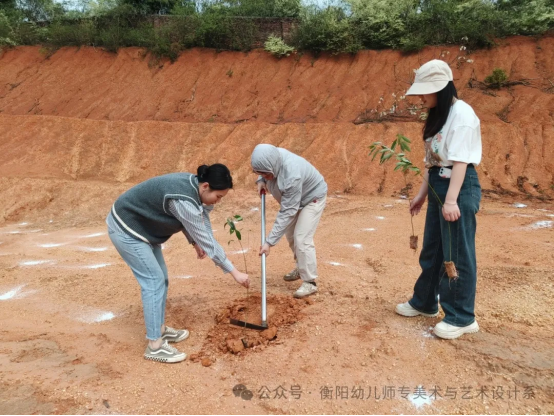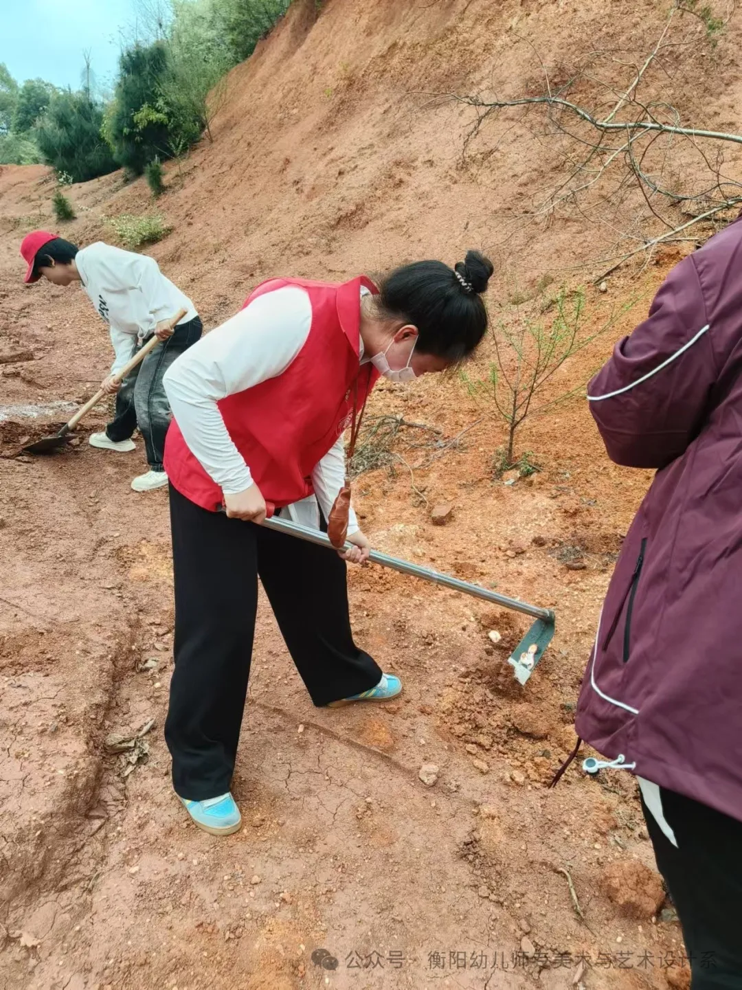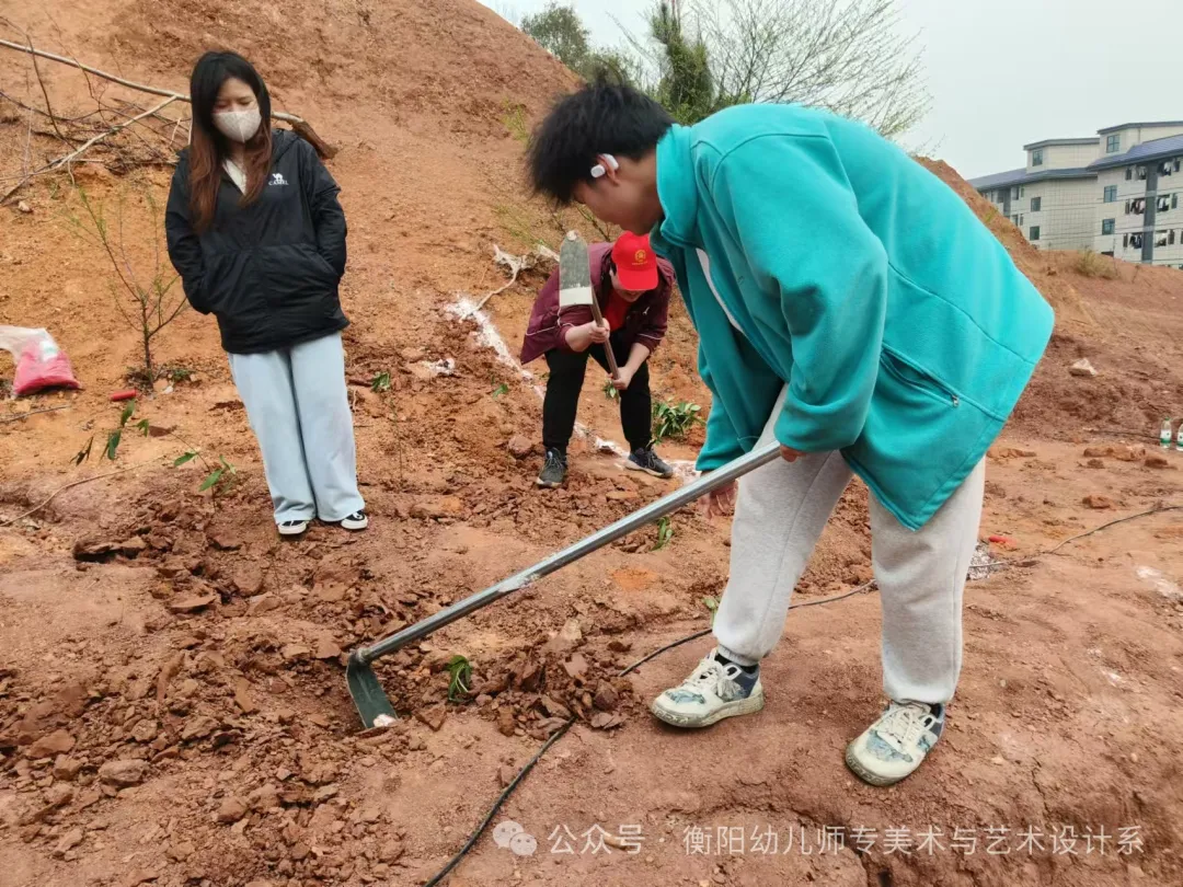 为深化"三全育人"综合改革,3月26日,衡阳幼儿师范高等专科学校美术与艺术设计系创新实施"党建+美育+劳育"融合育人模式,教师党支部联合学生党支部在大礼堂后山开展"艺术林"共建活动。师生以新绿植为画布,将植树节转化为生动的跨学科实践课堂,让生态文明理念在艺术创作中生根发芽。