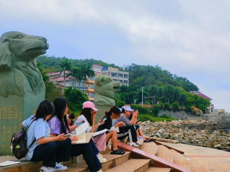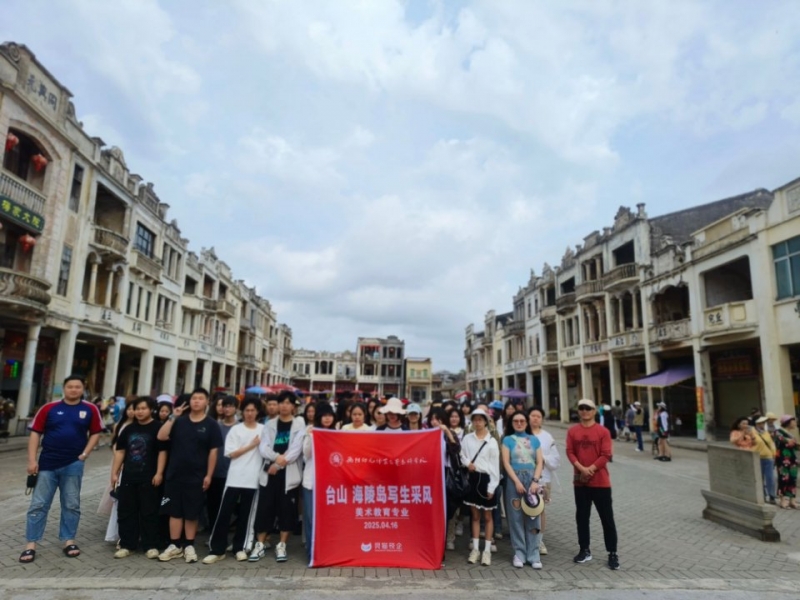 第二批2023级美术教育专业60余名师生进行了为期十天的广东台山与阳江的写生之旅。在台山梅家大院的百年骑楼群中,学生们以速写定格灰雕与罗马柱的岁月痕迹,名师郑中凯现场示范水彩技法,诠释“建筑是凝固的艺术史”;阳江海陵岛的碧波银沙间,丙烯绘制的渔船归港图与水墨晕染的潮汐韵律,展现传统技法与现代审美的交融。师生白天观摩名家创作,晚上则将客栈走廊化作“移动画廊”,最终以800余件作品镌刻侨乡古韵与海疆诗意的双重魅力。