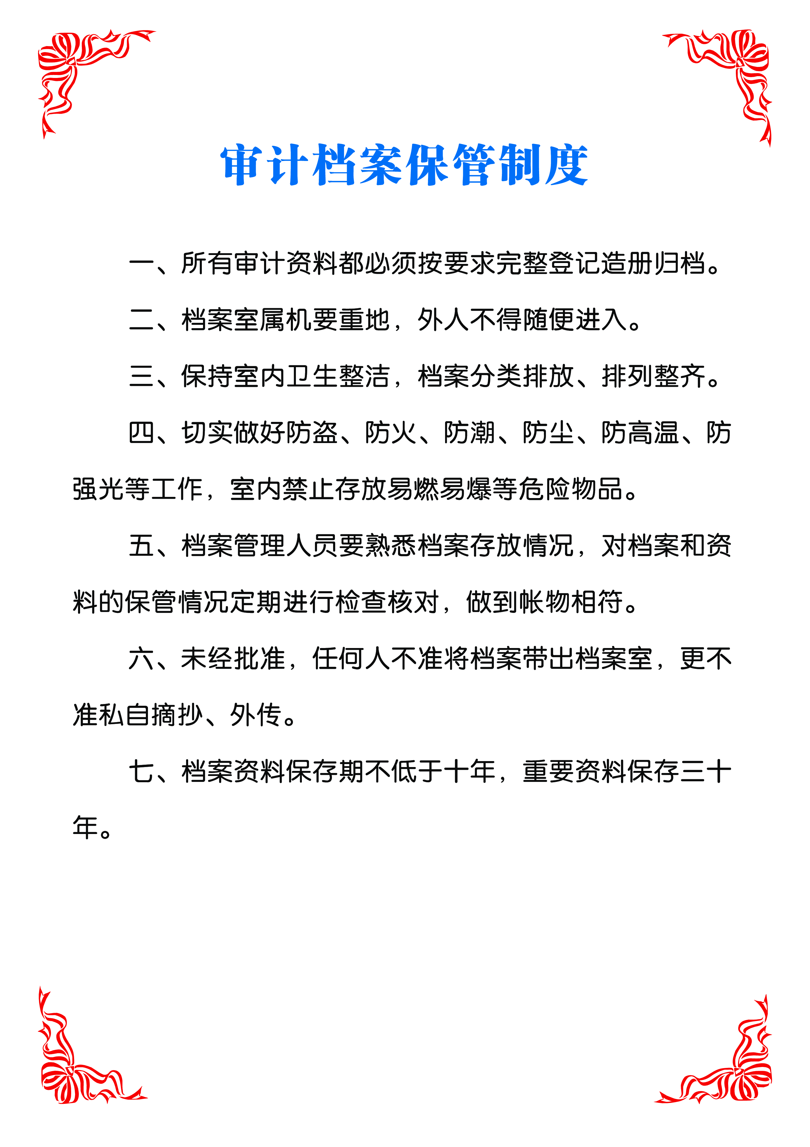审计处制度上墙——审计档案保管制度
