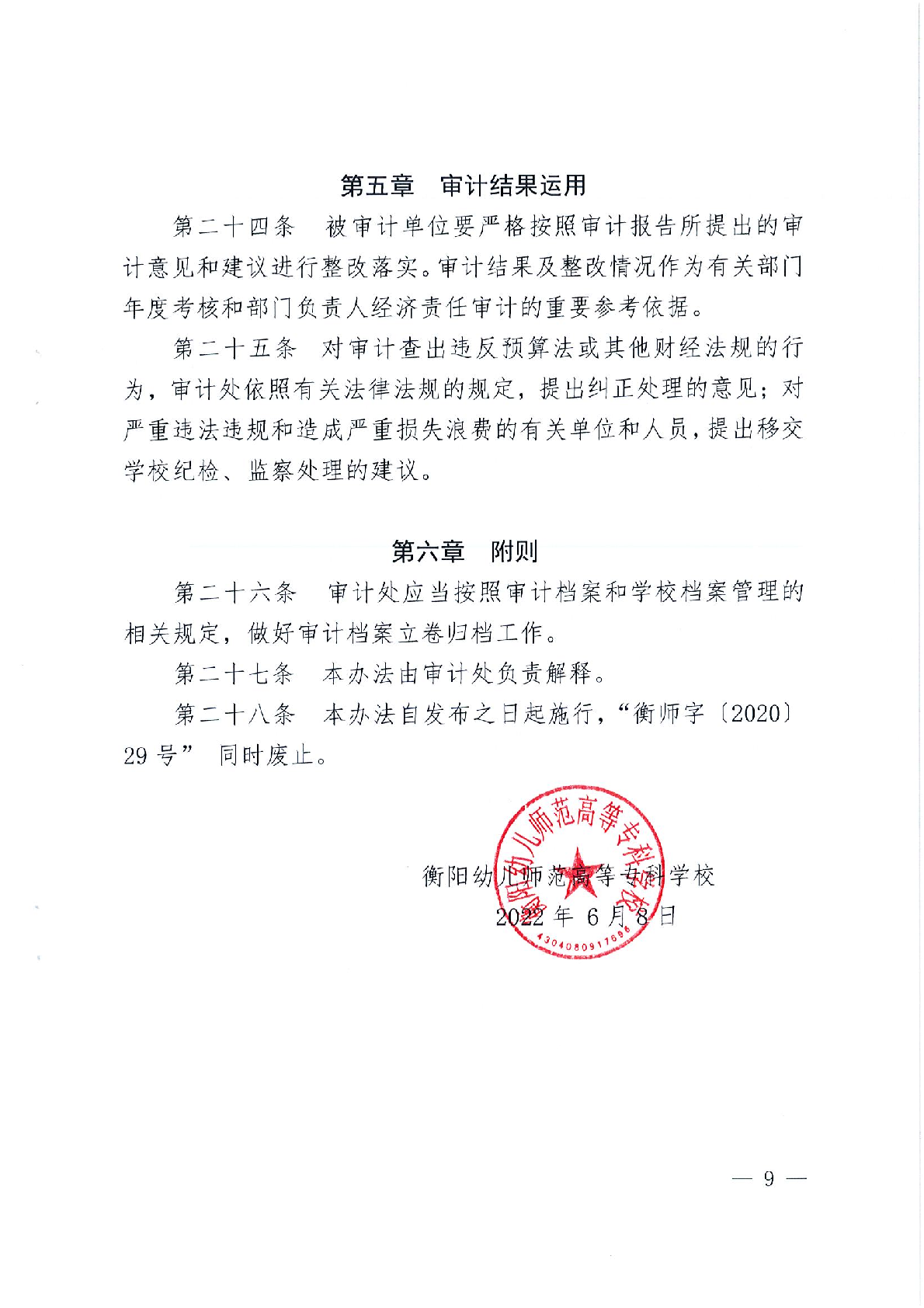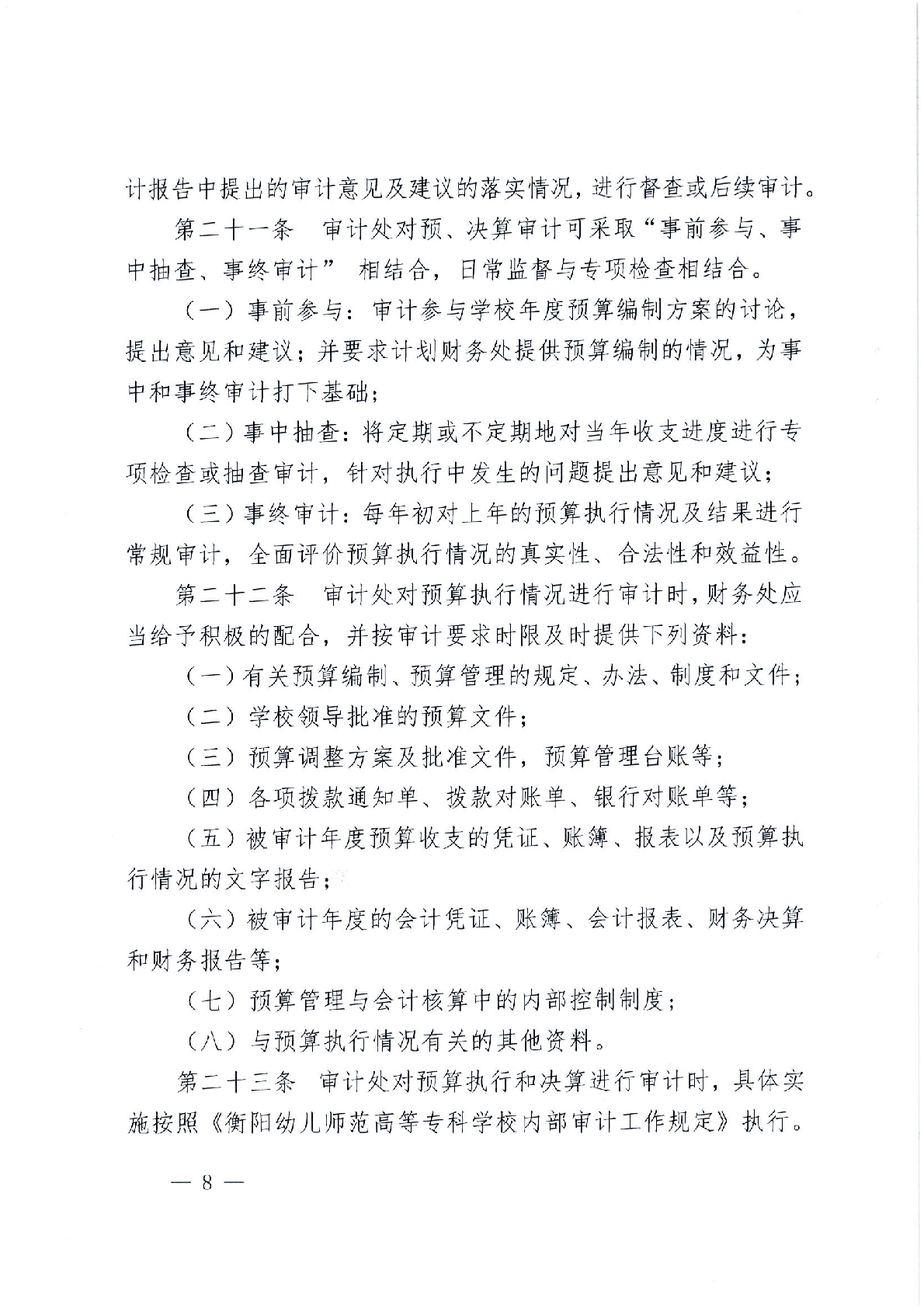 衡阳幼儿师范高等专科学校内部审计工作规程