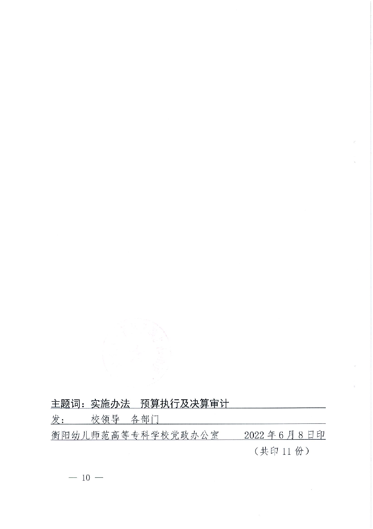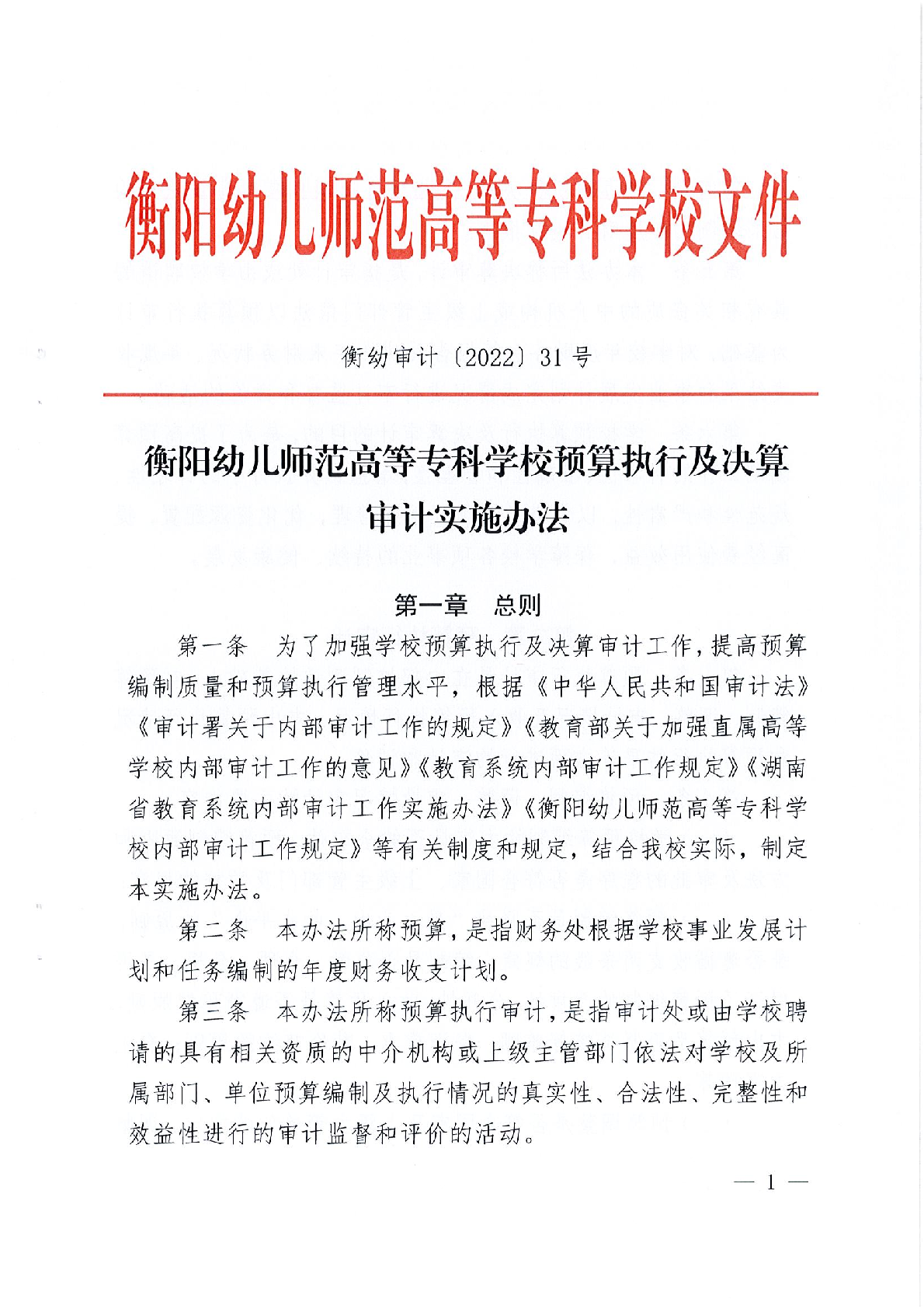 衡阳幼儿师范高等专科学校预算执行及决算审计实施办法