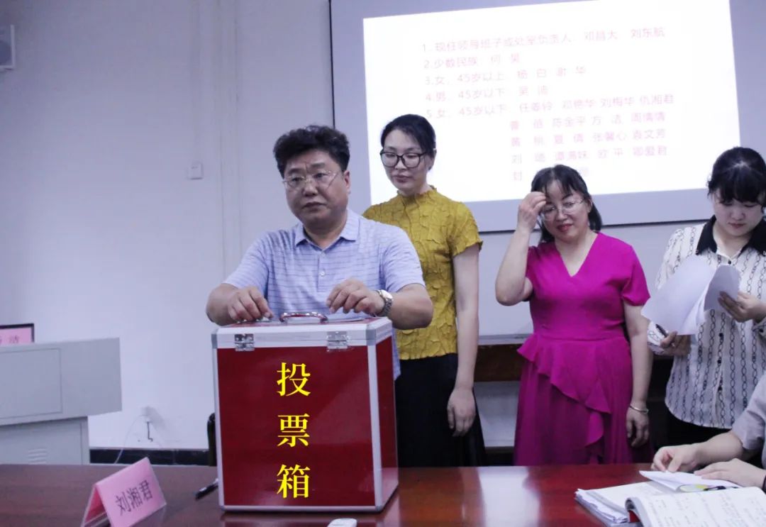 随后,全体党员采用无记名方式进行全额推荐投票,经过统票,邓昌大、邓艳华、方洁、刘东航、刘璐、刘梅华、任姜铃、何昊、吴迪、陈金平、杨白、张馨心、袁文芳、卿爱君、曹蓓(按姓氏笔画排序)等15位同志确定为教学第一党支部参加学校第一次党代会代表候选人推荐人选。