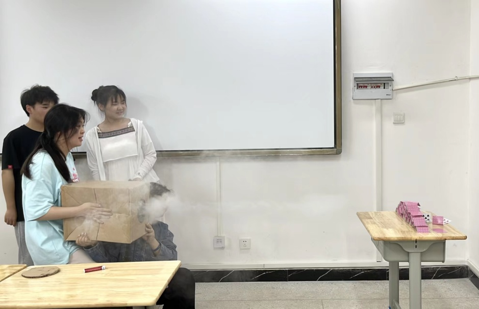 此次比赛为团队赛,是由四人组成一支队伍,需要在规定的时间内向评委以及观众展示自己组的小实验,并需要边操作边解说。晚上7:00,在同学们的满心期待和跃跃欲试中,主持人宣布比赛正式开始。参赛选手们按组别依次上台进行操作展示。