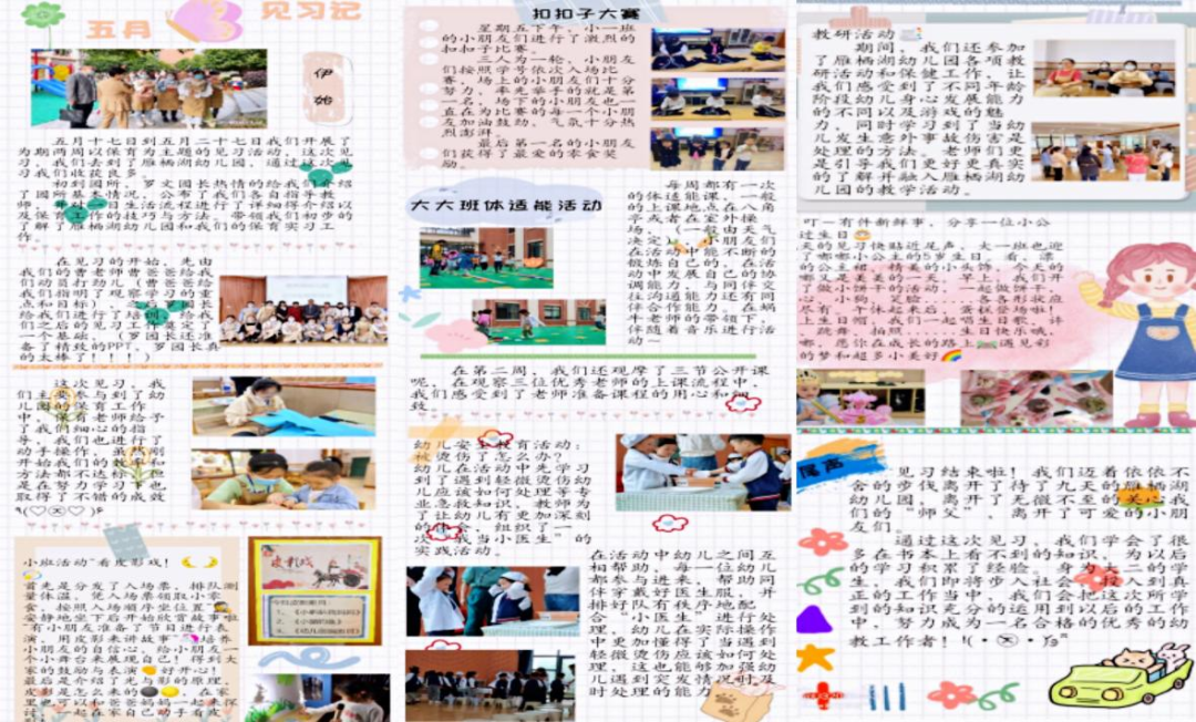 2022年5月17日至27日,学前2027班46名小老师分别进入了衡阳幼师附属幼儿园、华德福实验幼儿园、雁栖湖幼儿园和莱恩国际幼儿园进行了为期9天的见习,回顾见习生活的种种,记忆深刻,成长满满,收获多多,一起来看看吧!