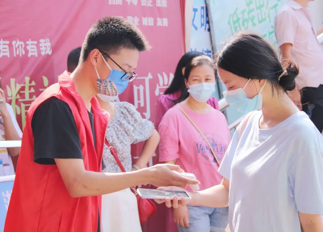 她们是醒目的“鲜红色”,是学前志愿者,在她们引导下,萌新们正进行各项安全检查,测量体温、查看健康码、行程码、二十四小时核酸检测报告,迎接萌新,我们不仅要有热情,更要做好疫情的防控措施,保证师生健康。