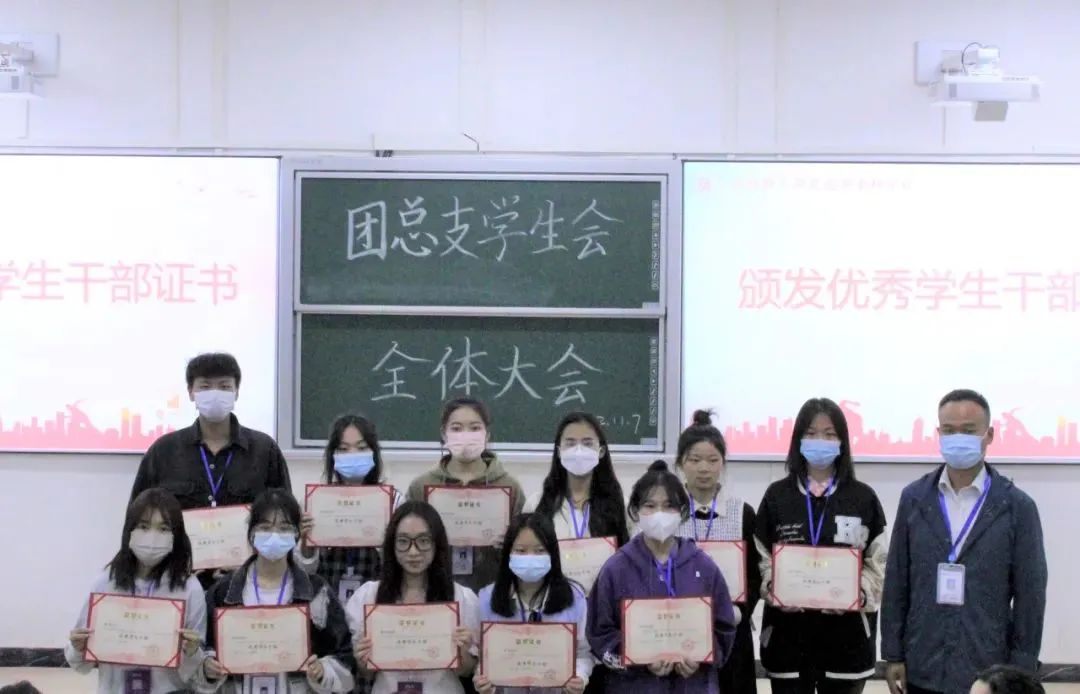 大会开始,吴迪副主任和吴鹏老师为团总支、学生会优秀学生干部颁发荣誉证书,指导老师陈琴、罗娇霞为团总支、学生会新成员颁发聘书。