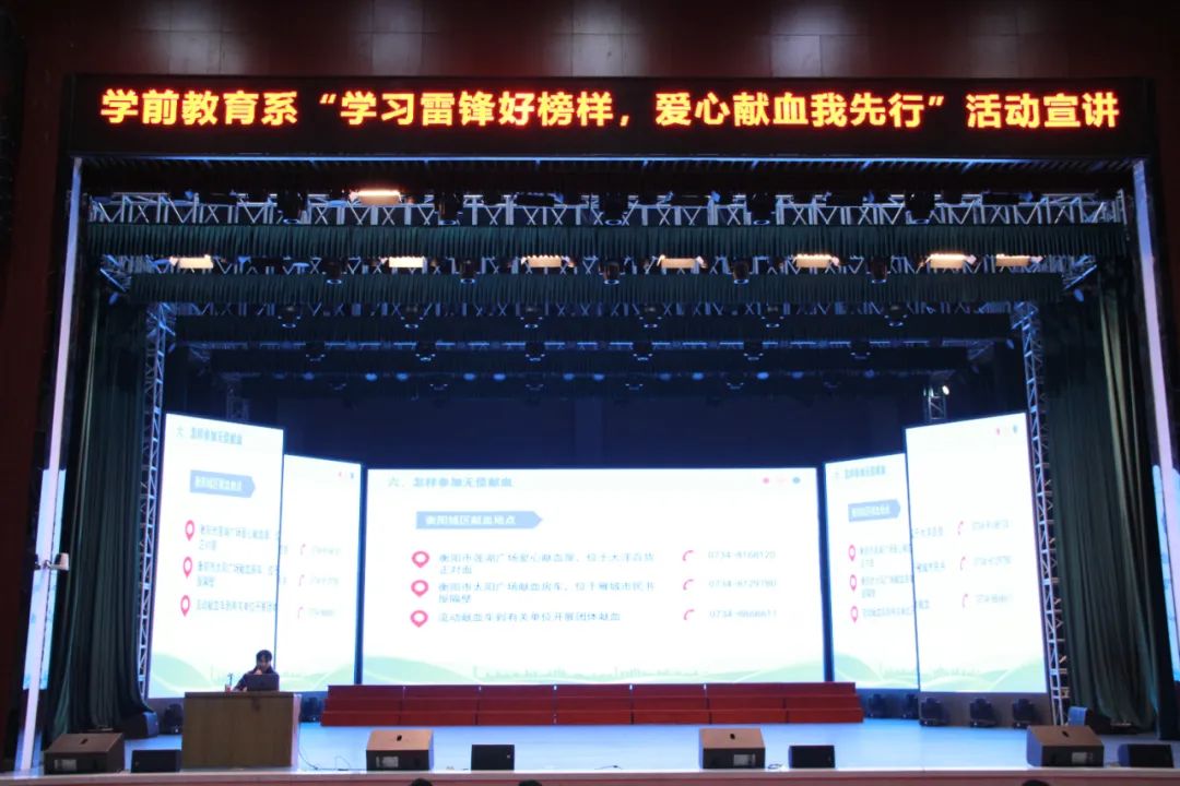 今年3月5日是毛泽东等老一辈革命家为雷锋同志题词60周年,为进一步传承雷锋精神,树立时代新风,发扬大学生爱心奉献精神。3月1日,学前教育系在大礼堂举行了无偿献血知识宣讲。本次宣讲邀请了衡阳市中心血站陈敏老师到现场为同学们讲解无偿献血知识。