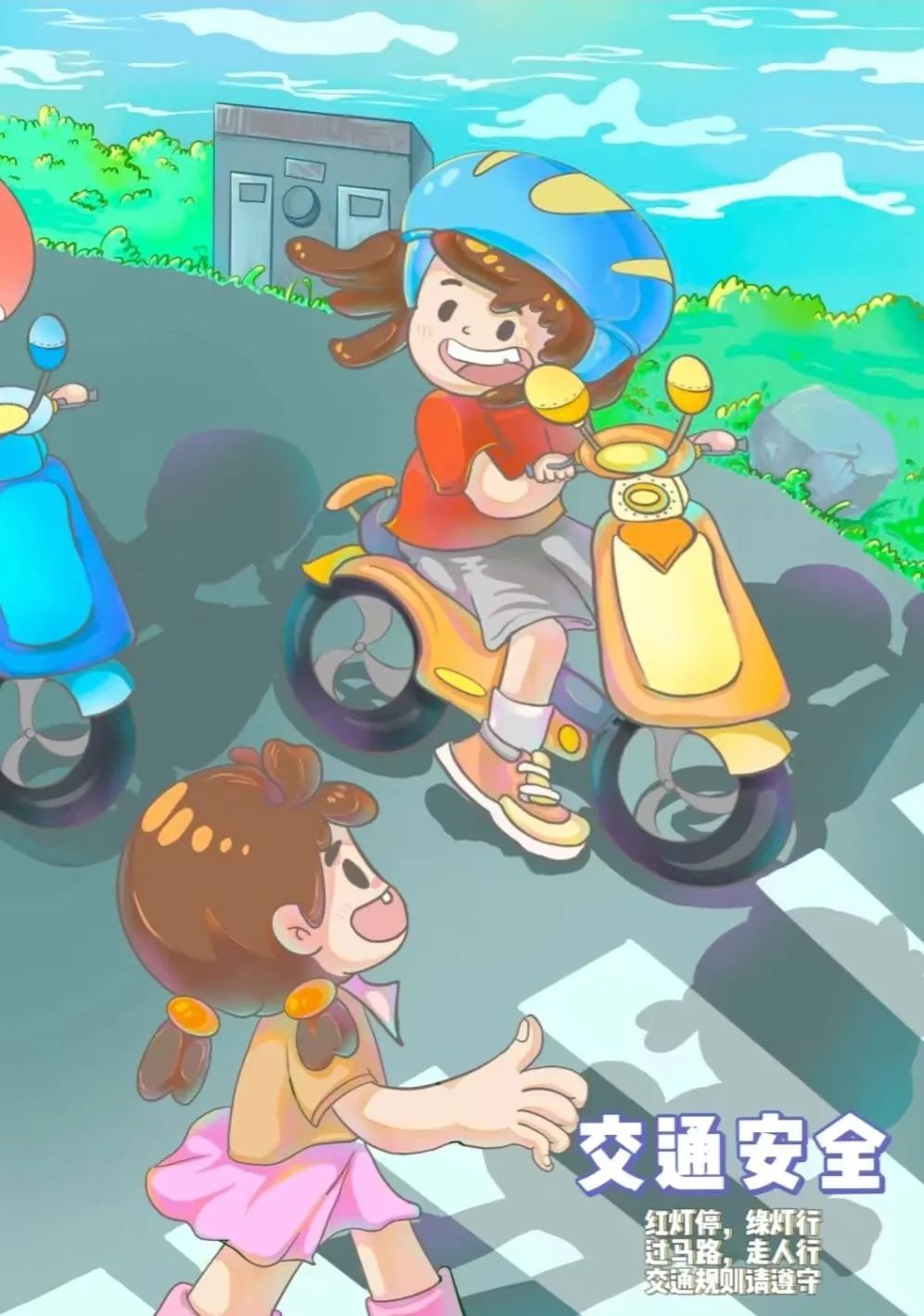 假期出行需安全。电动车出行要佩戴头盔,上下车及过马路时注意交通安全。