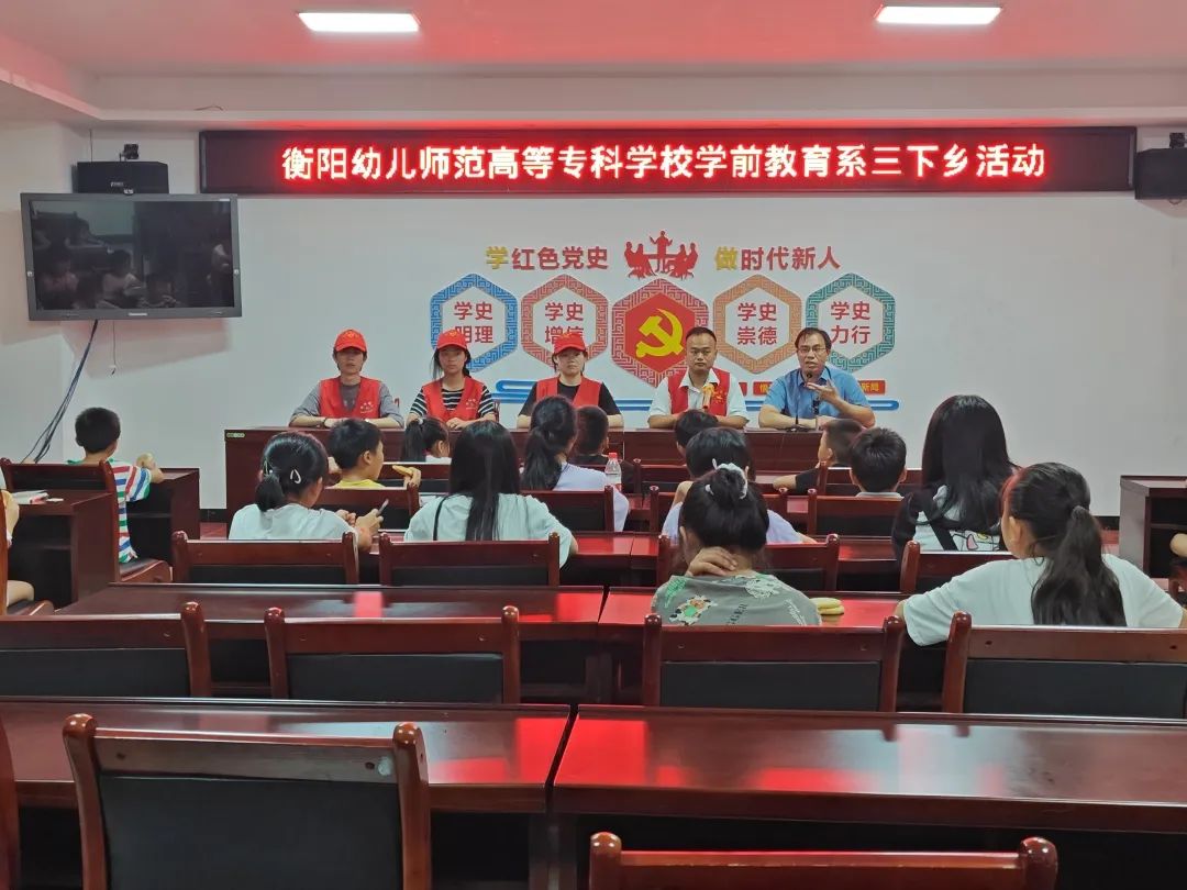 为了加强实践育人,教育并引领大学生在社会实践中开阔视野、增强才干、了解社会、认识国情,以及培育和实践大学生的社会主义核心价值观,增强社会责任意识,磨练大学生的意志品质等,由衡阳市团委举办、衡阳幼儿师范高等专科学校校团委组织的“暑期三下乡活动”正式启动。7月6日,本次学前教育系“三下乡”小组前往了“常宁市洋泉镇”,进行“送教下乡”活动,活动由邓艳华书记、马奕斌专职副书记指导,吴鹏老师带队,学前2109班彭崴彬、学前2205班隆雨贤、学前2213班谭安妮三名同学作为志愿者参与本次活动。