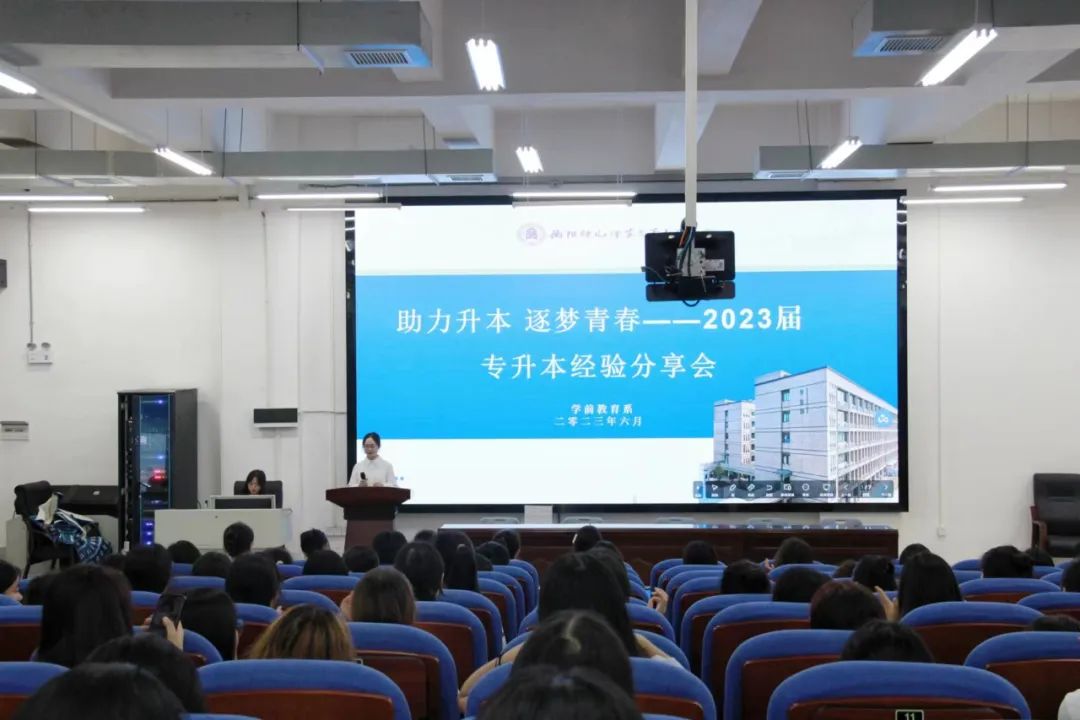 为进一步促进优良学风,营造良好的学习氛围。帮助同学们对专升本考试有更充分的认识和了解,做好未来的学习规划和掌握备考技巧。6月24日晚,学前教育系特在阶梯五教室举行了“助力升本,逐梦青春”——2023届专升本经验分享会。本次分享会邀请了来自不同升本学校的优秀学生代表,学前教育系党总支书记邓艳华、专职副书记马奕斌、各班辅导员和学生代表参加此次会议。