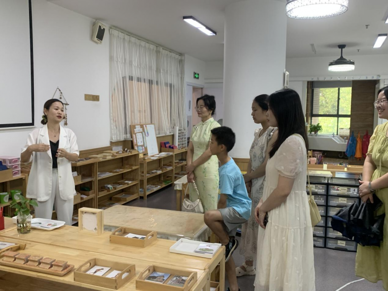 随后,交流学习团的老师们在全园长的带领下,踏入了充满探索与启迪氛围的蒙台梭利教室。这里,日常生活区、艺术区、感官区、语言区、数学区等区域布局有序,每一处都精心设计,旨在激发幼儿的学习兴趣与潜能。大家被眼前丰富多彩的教学环境深深吸引,纷纷驻足细致观察,不时交流心得,对蒙台梭利教育法的独特魅力有了更为直观和深刻的理解。?