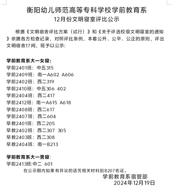 学前教育系寝室文化节系列 | 第五期——十二月文明寝室评比