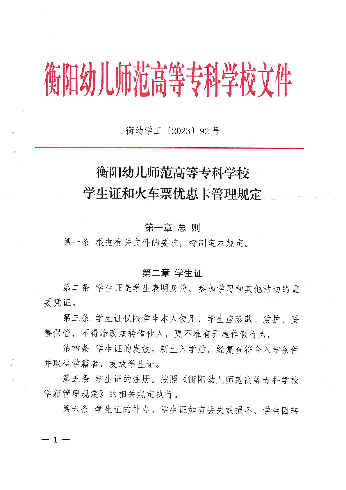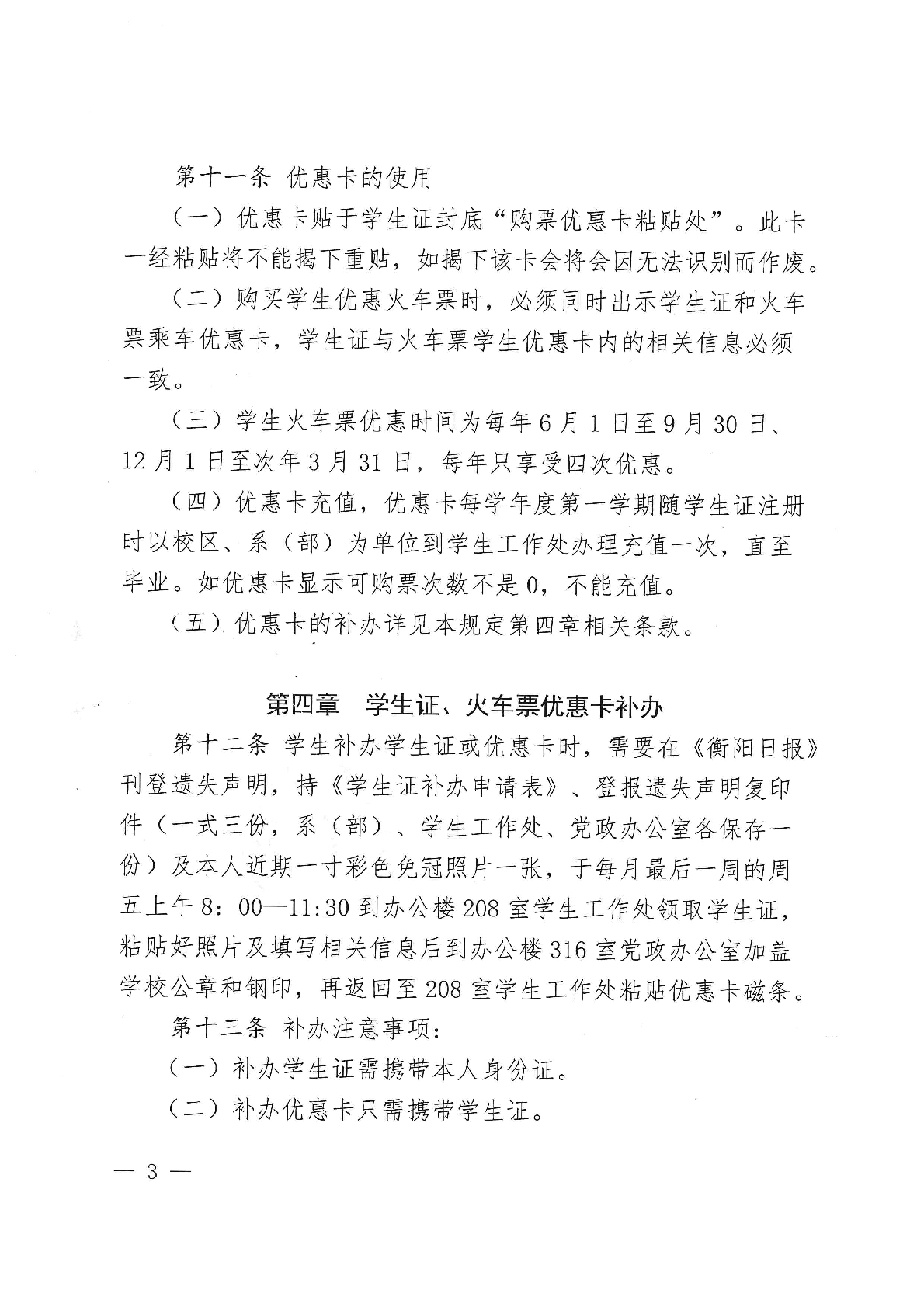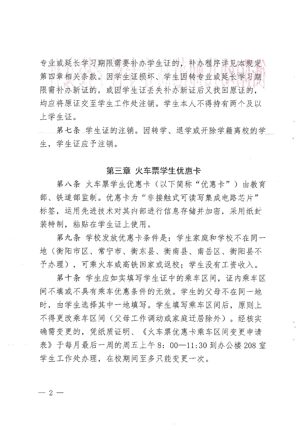 衡阳幼儿师范高等专科学校学生证、火车票优惠卡管理规定