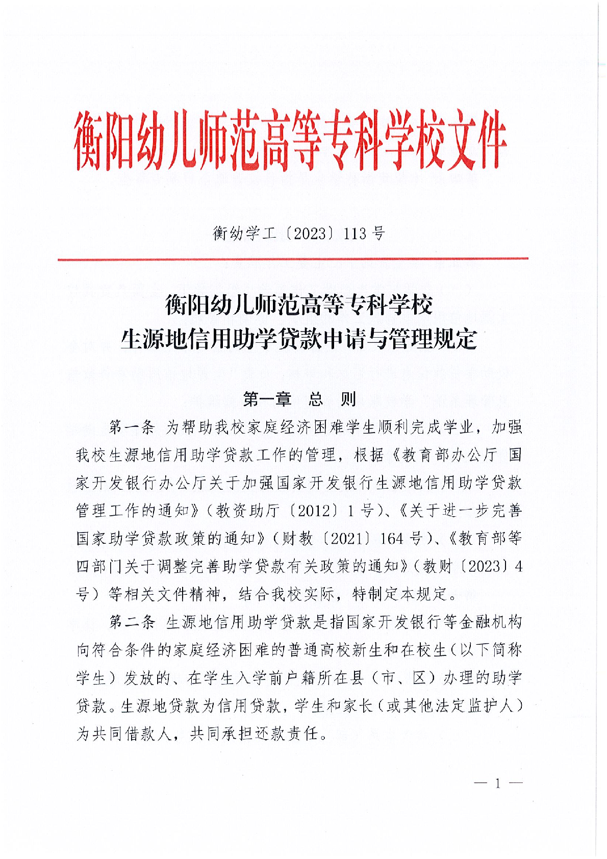 衡阳幼儿师范高等专科学校助学贷款申请与管理规定