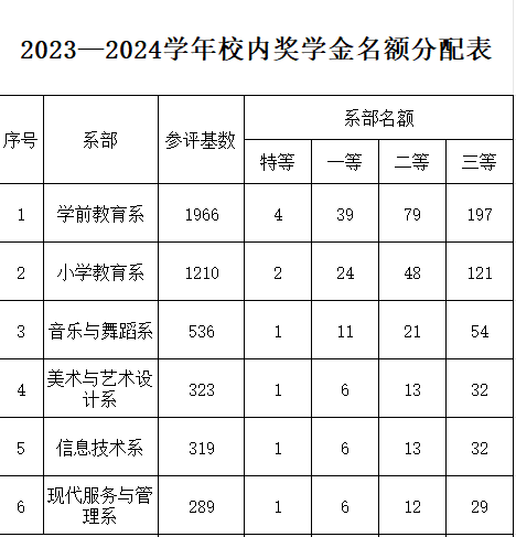 为激励广大同学勤奋学习,不断提高自身综合素质,德智体美劳全面发展,学校决定开展2023—2024学年校内奖学金评选工作,现将具体事项通知如下: