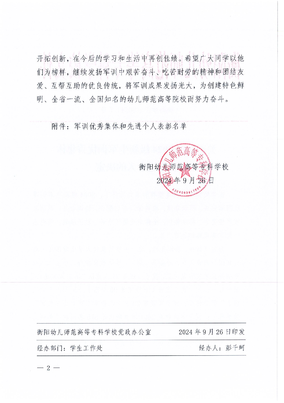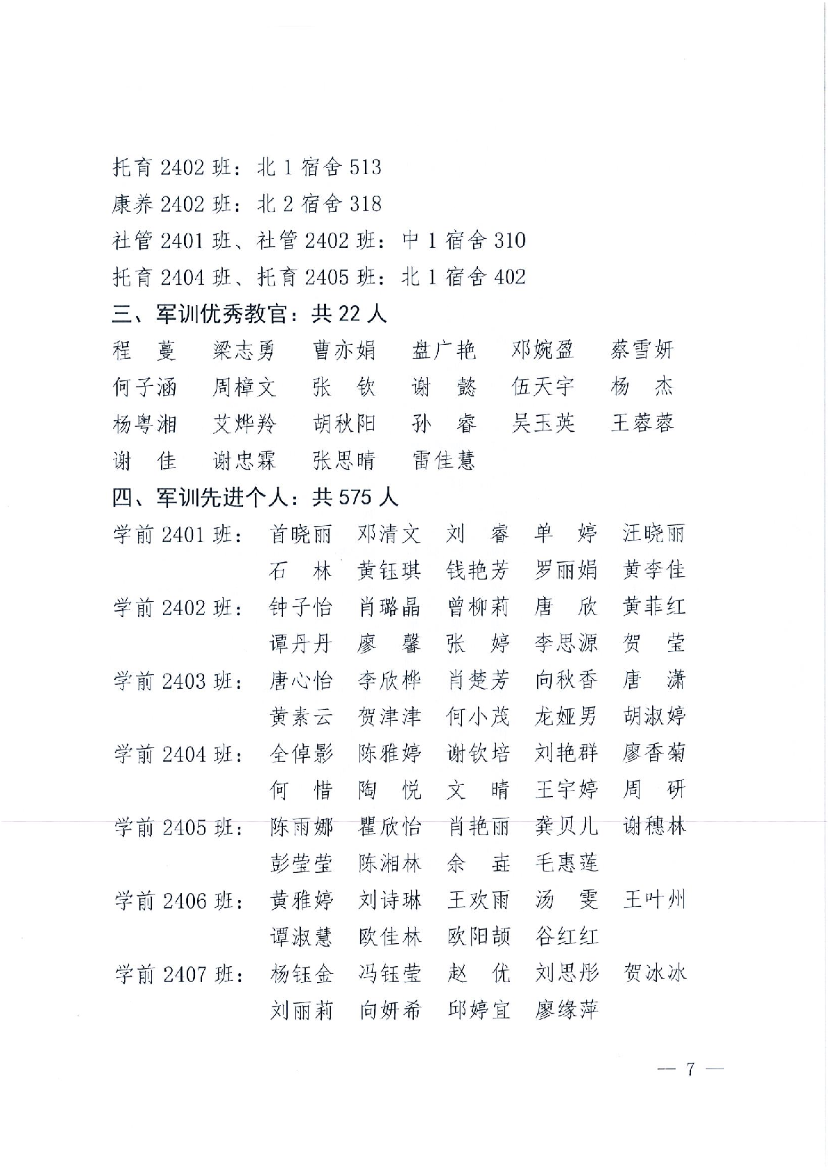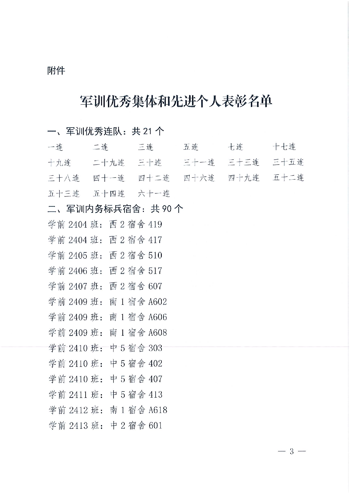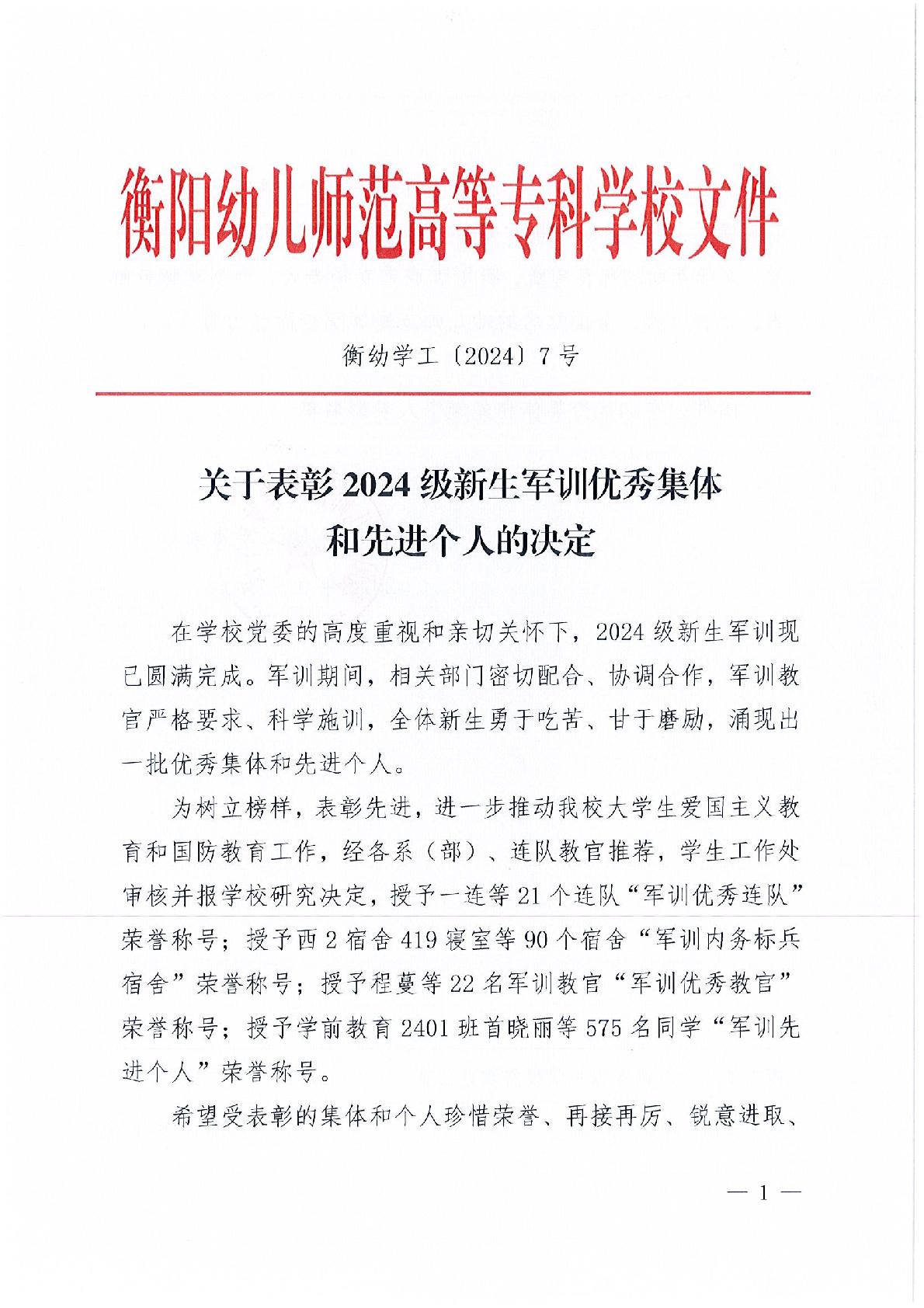 关于表彰2024级新生军训优秀集体和先进个人的决定