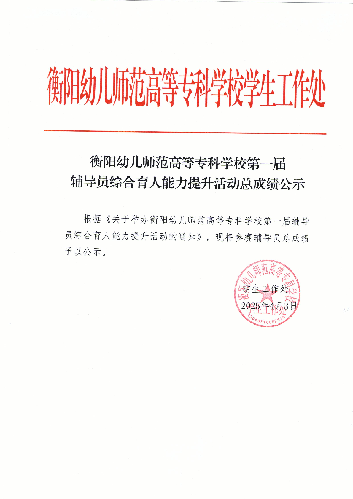 衡阳幼儿师范高等专科学校第一届辅导员综合育人能力提升活动总成绩公示