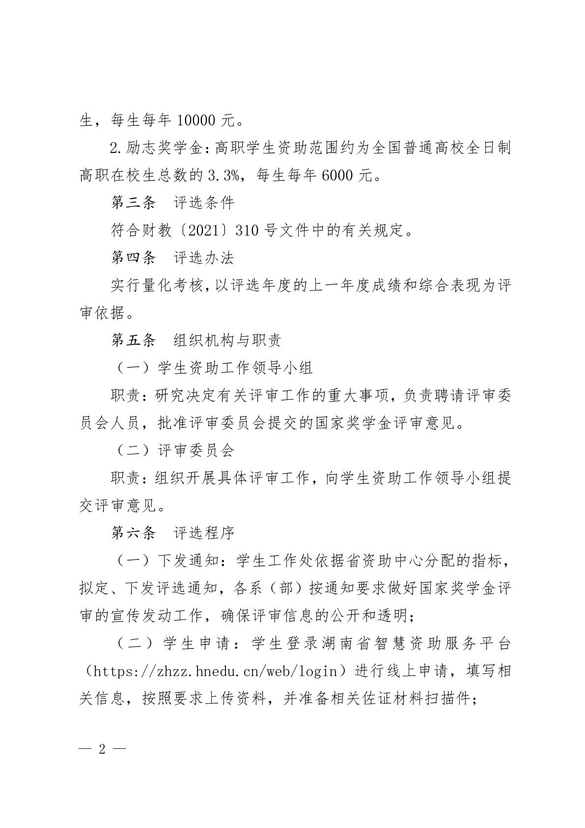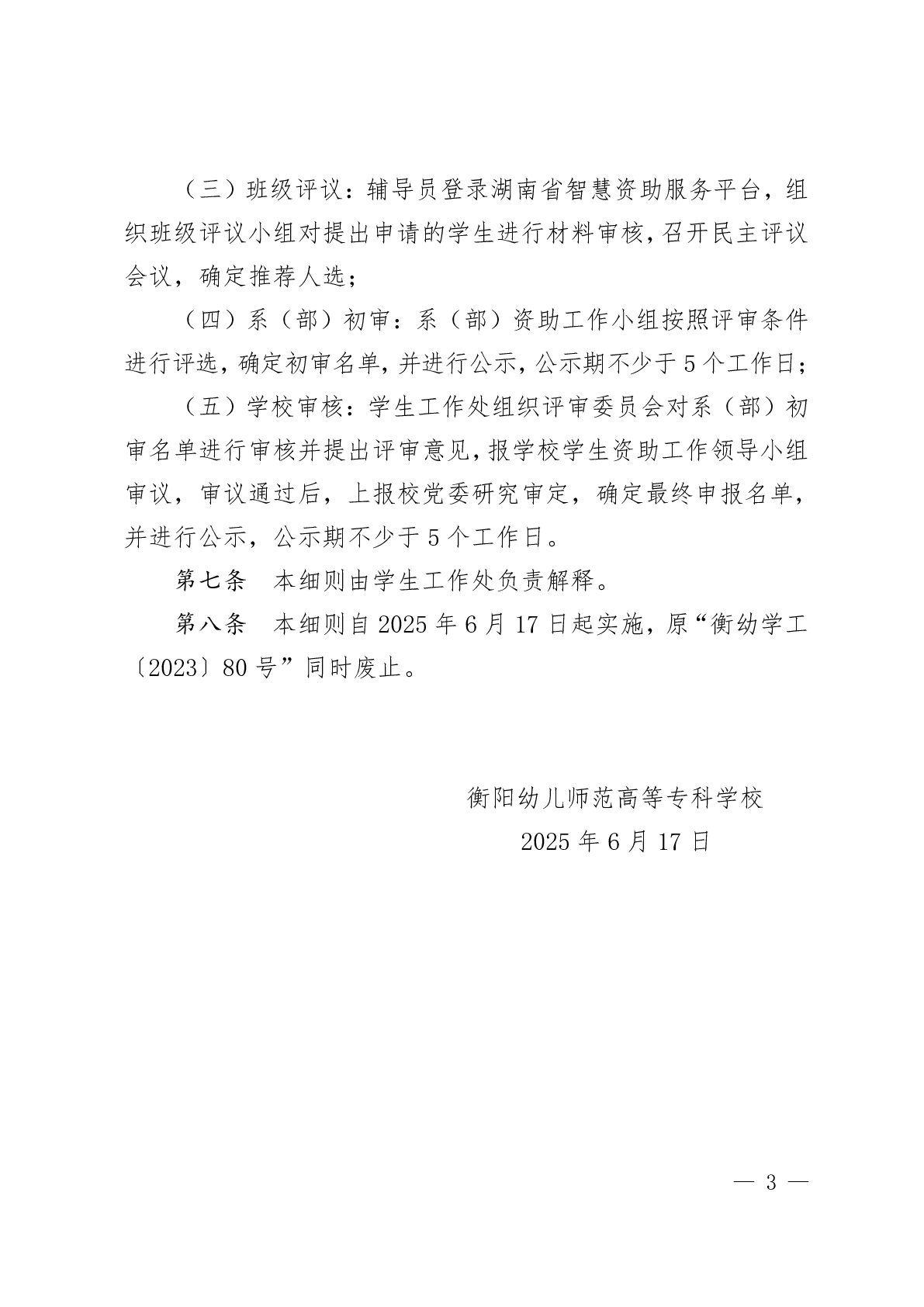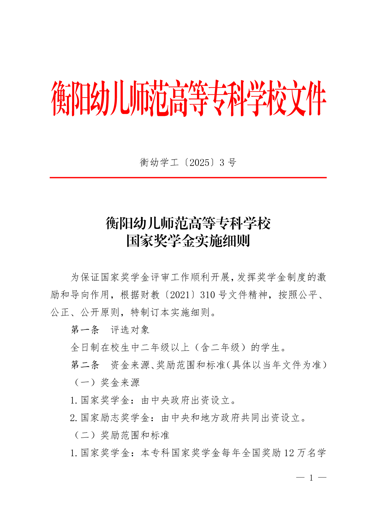 衡阳幼儿师范高等专科学校国家奖学金实施细则