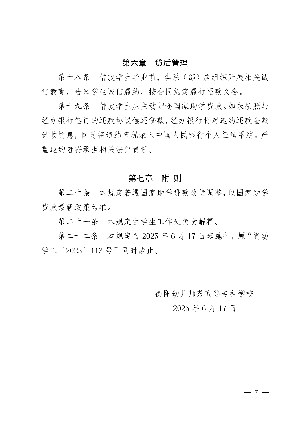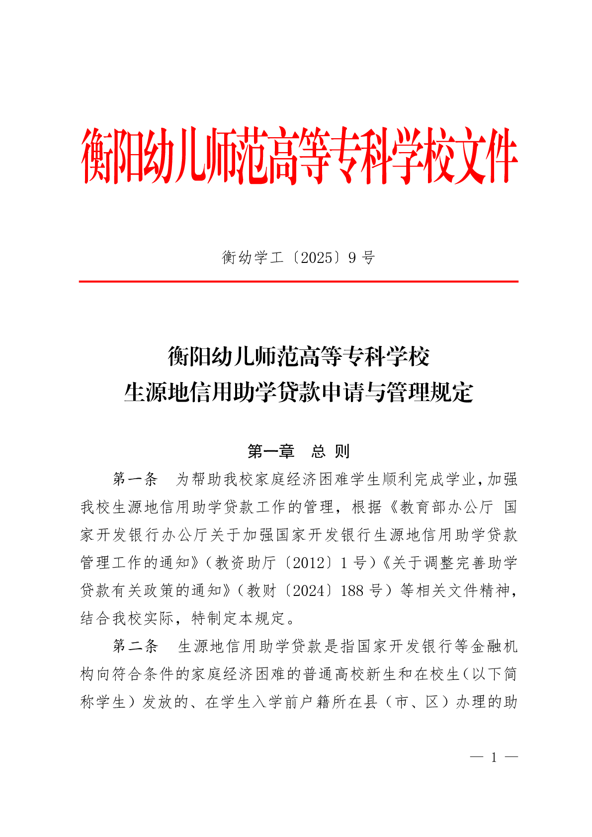 衡阳幼儿师范高等专科学校生源地信用助学贷款申请与管理规定