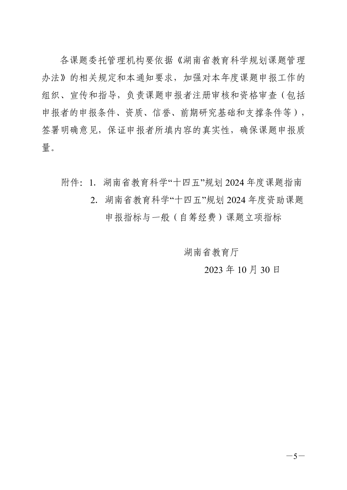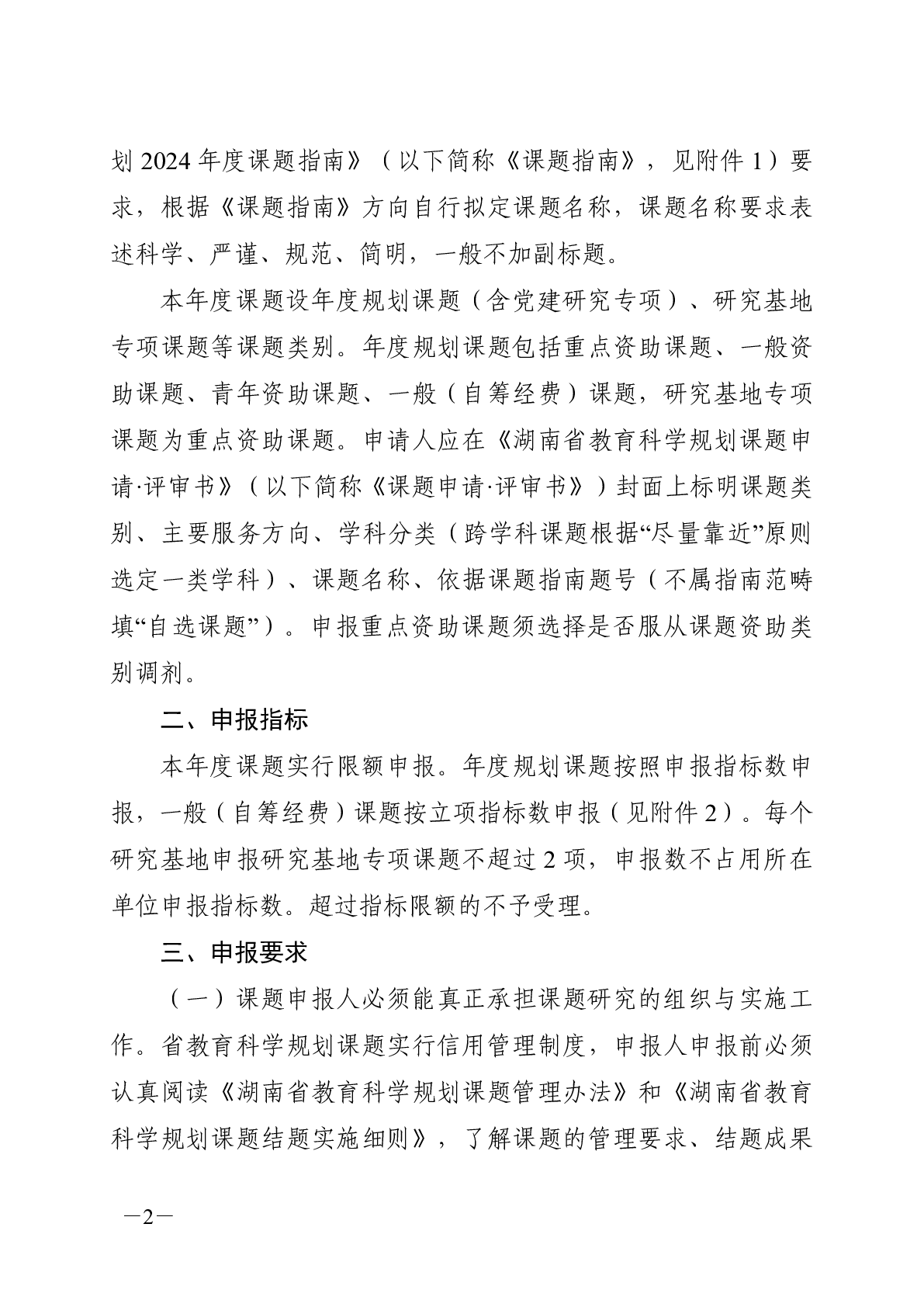 关于湖南省教育科学 “十四五”规划 2024 年度课题组织申报工作的通知