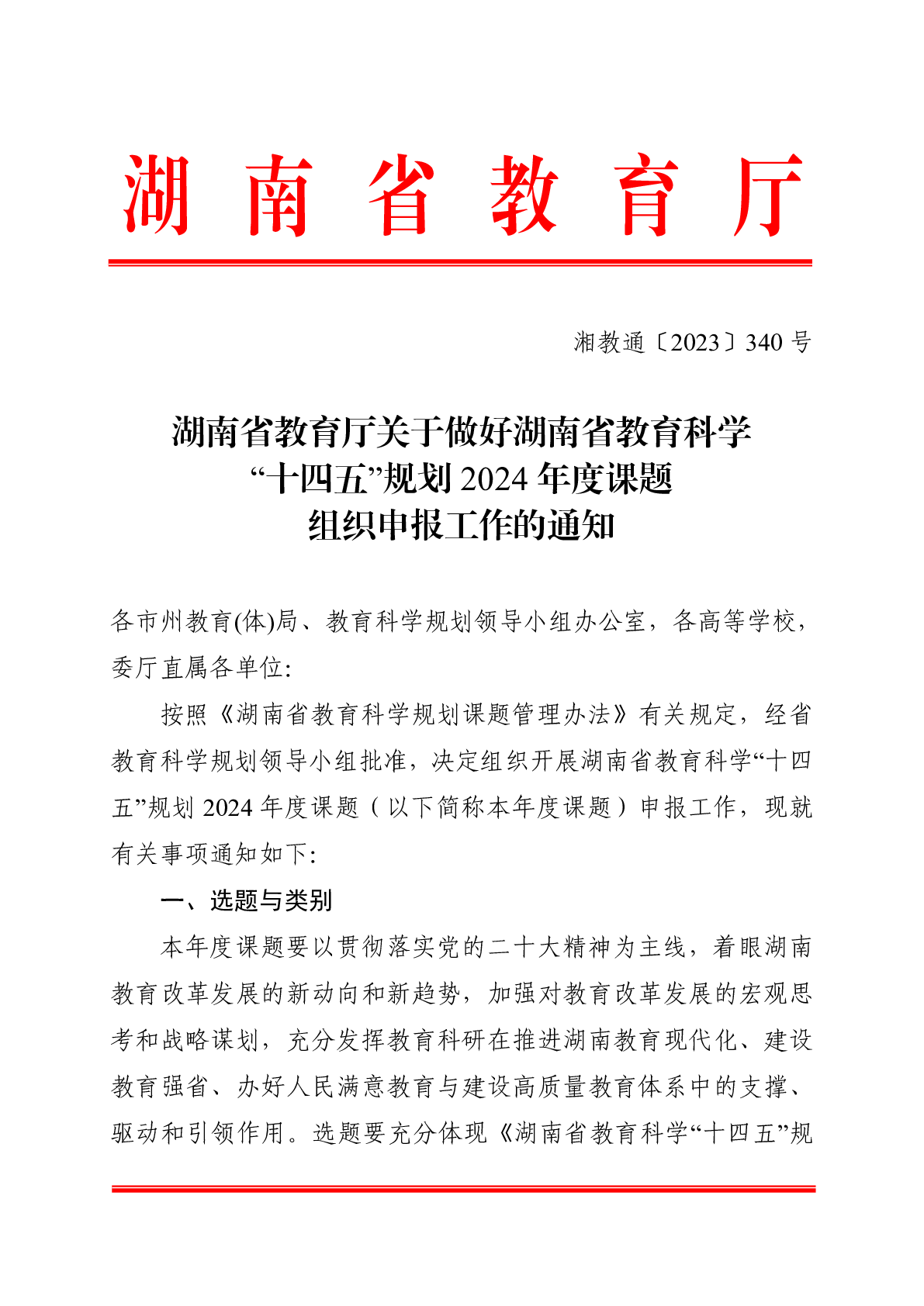 1.关于做好湖南省教育科学“十四五”规划2024年度课题组织申报工作的通知正文.pdf