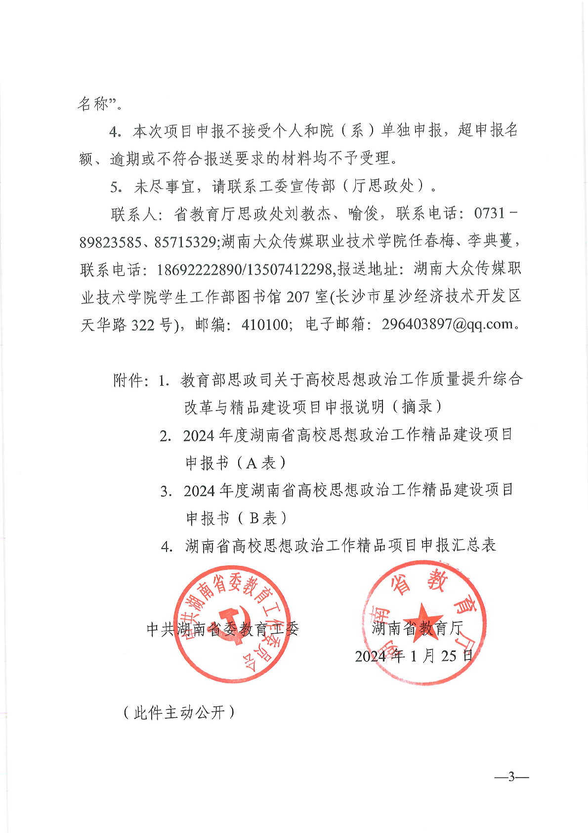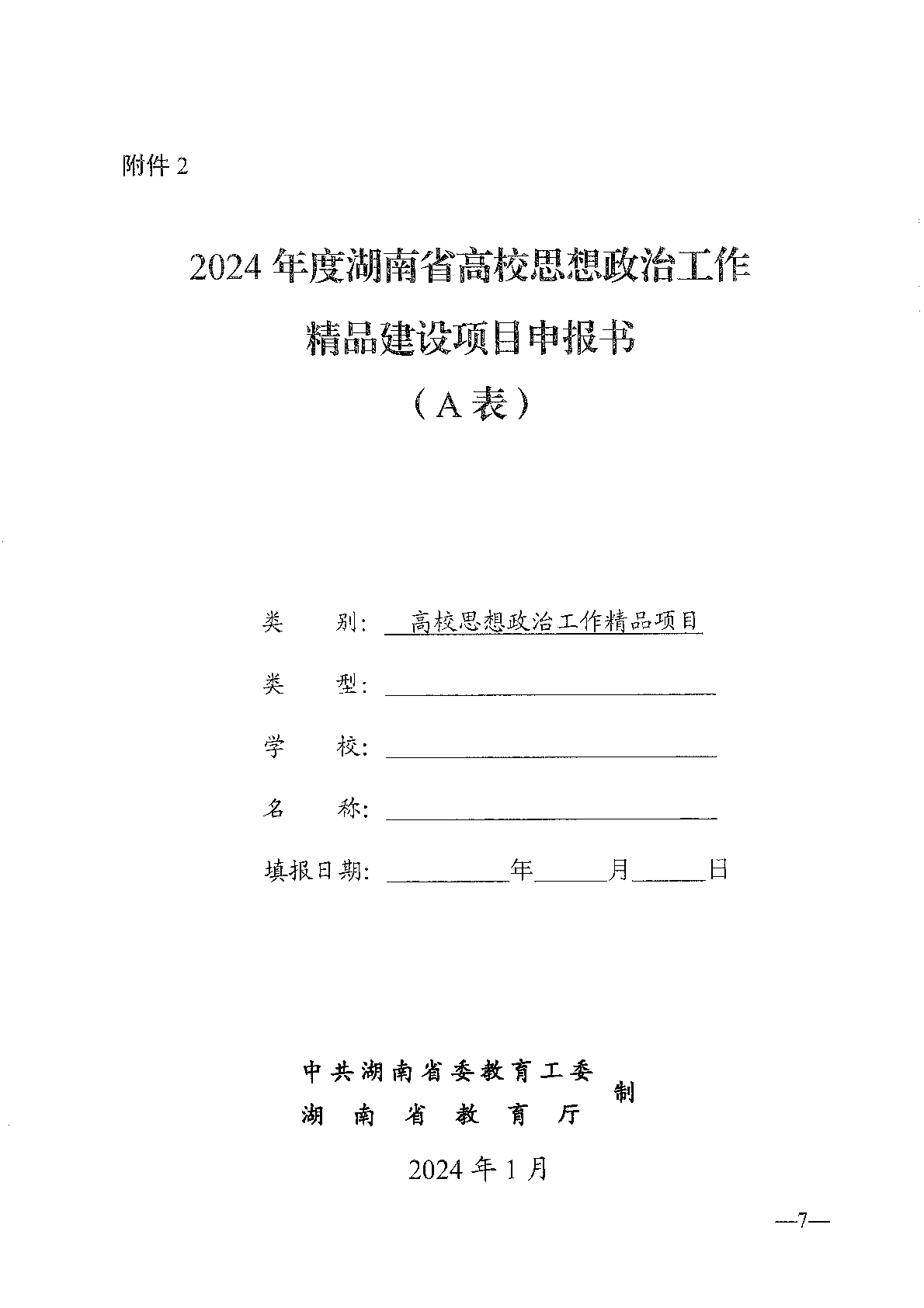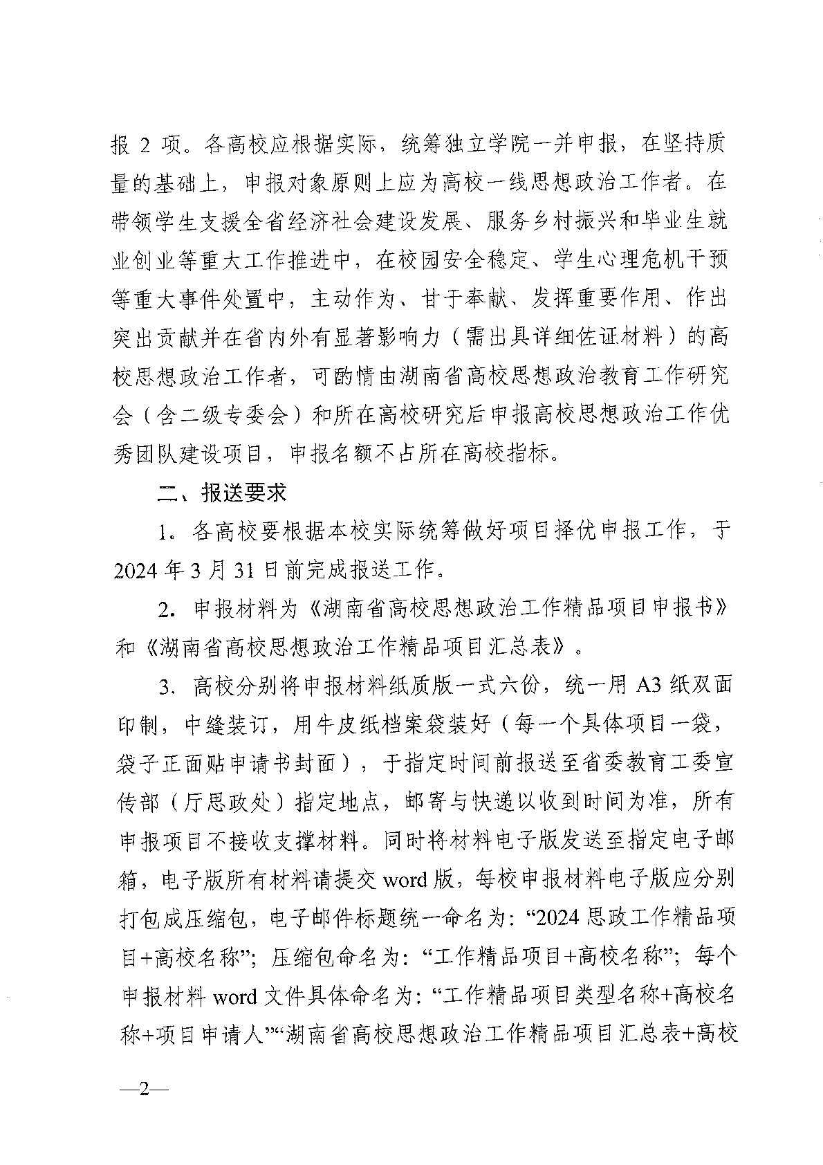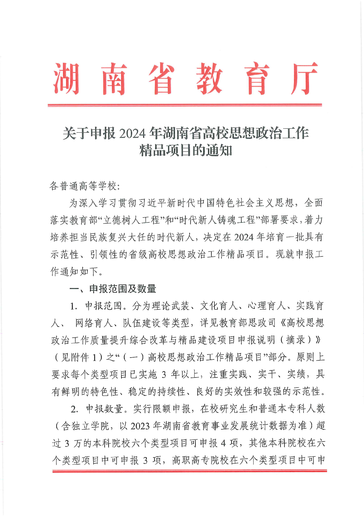 关于申报2024年湖南省高校思想政治工作精品项目的通知