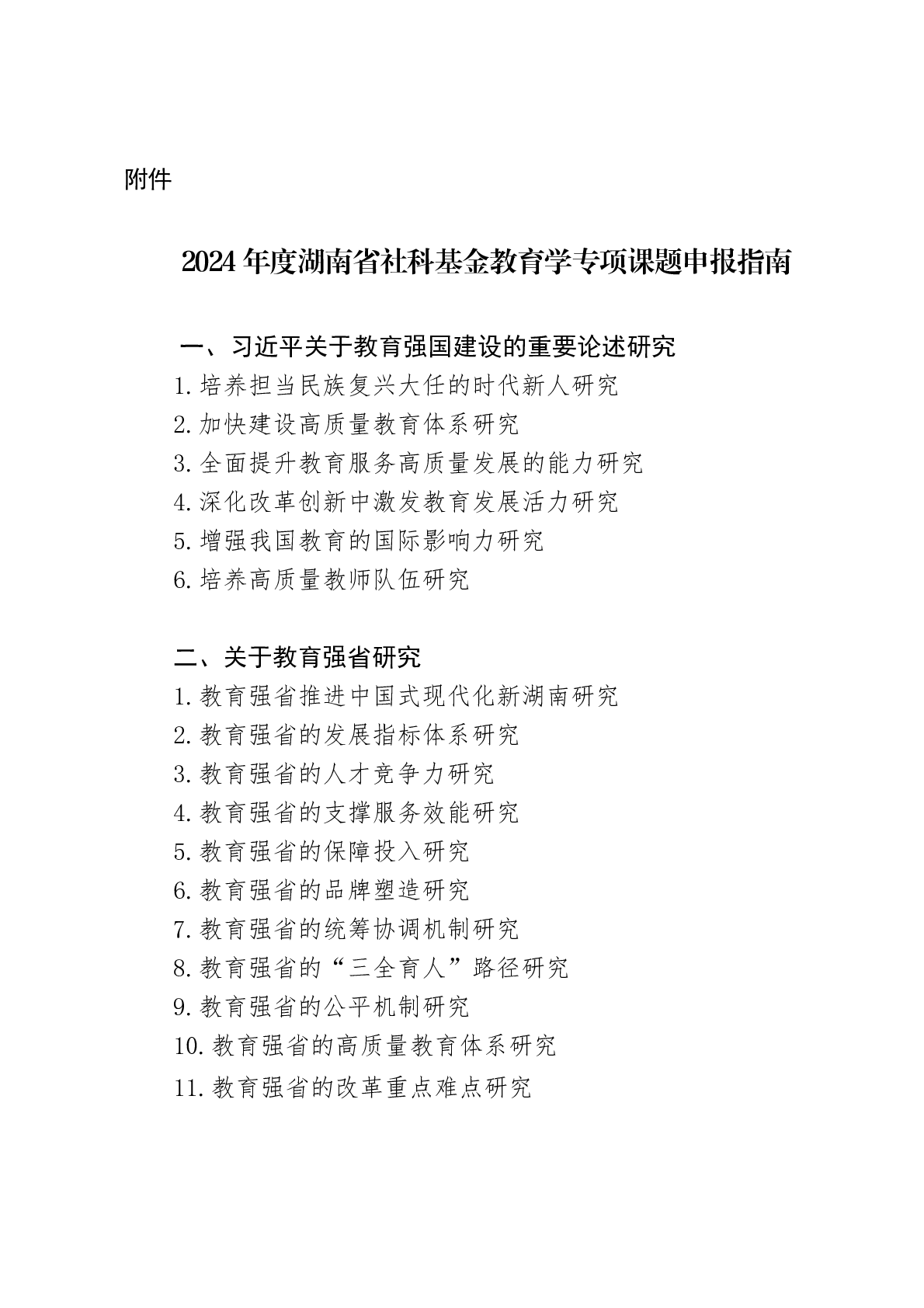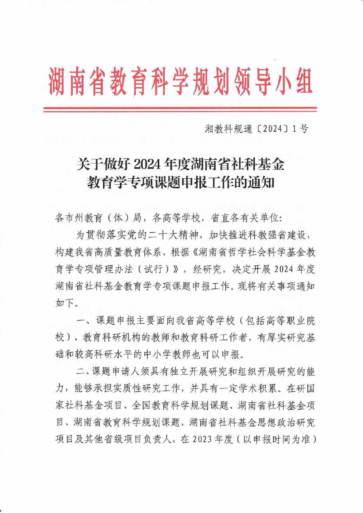 关于做好2024年度湖南省社科基金教育学专项课题申报工作的通知