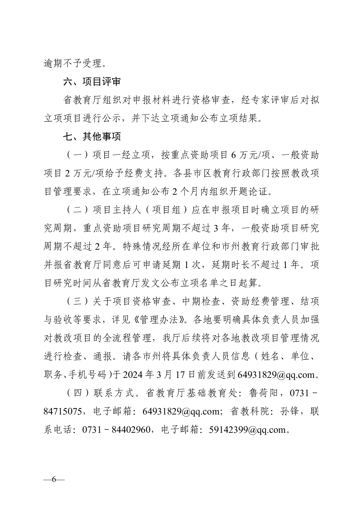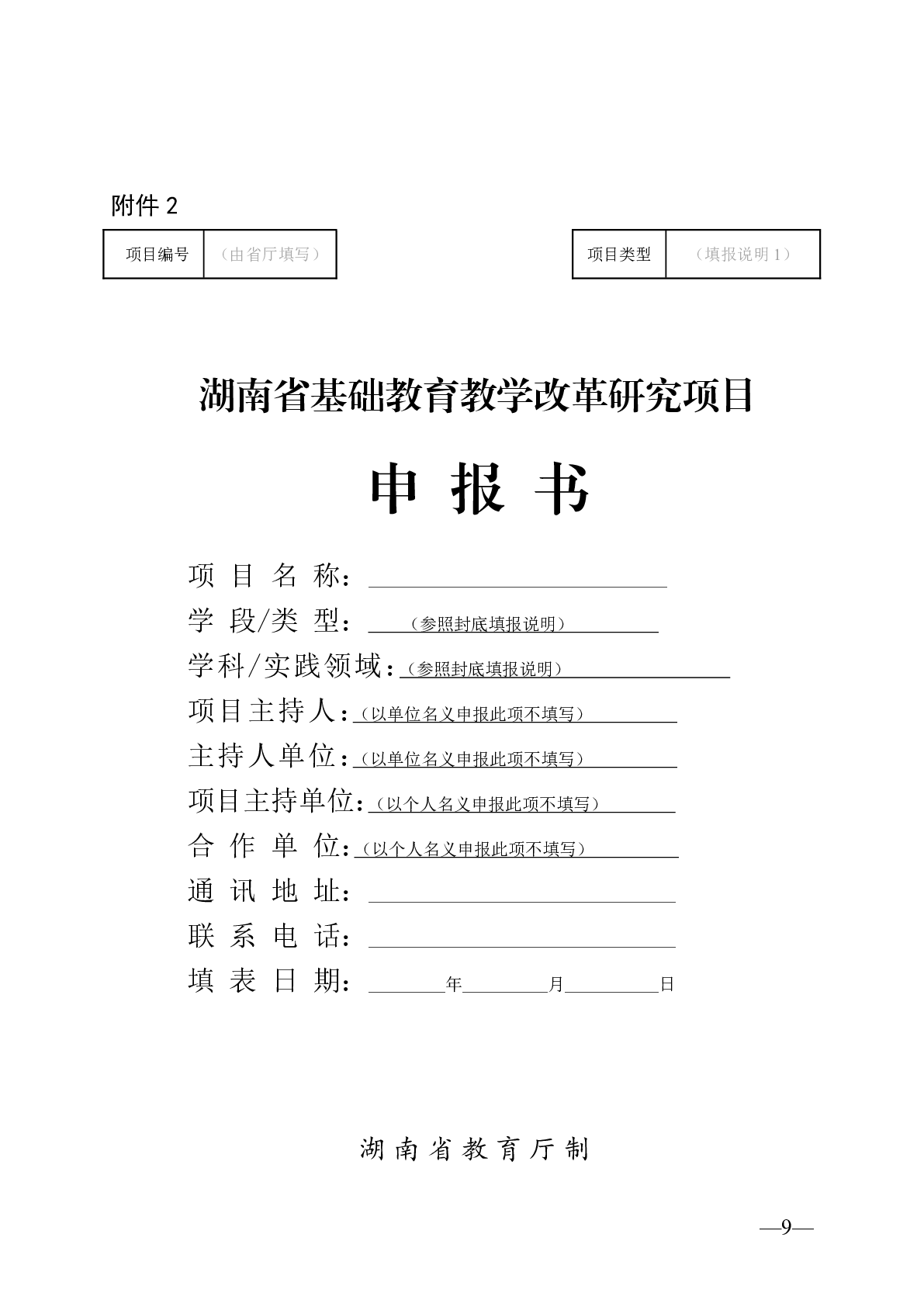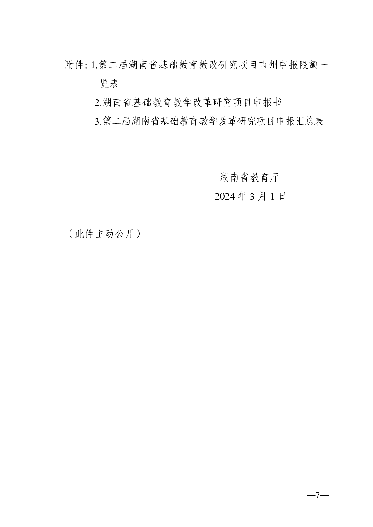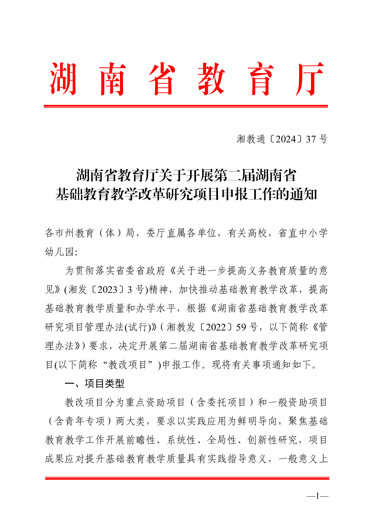 关于开展第二届湖南省基础教育教学改革项目申报工作的通知